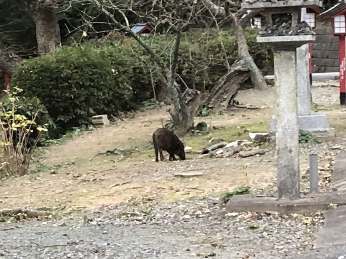 商売繁盛の神様と言われている宮地嶽神社に行って、イノシシ年にウリ坊に会うって縁起が良いのでは?