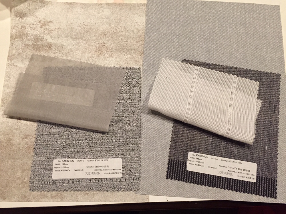 遮熱レース、これだけ暑いと 使ってみたいという方が多いです。生地が厚くて透け感があまりないのは残念ですが、裏がテカテカはさてなくて、触り心地も悪くないレース(右側)