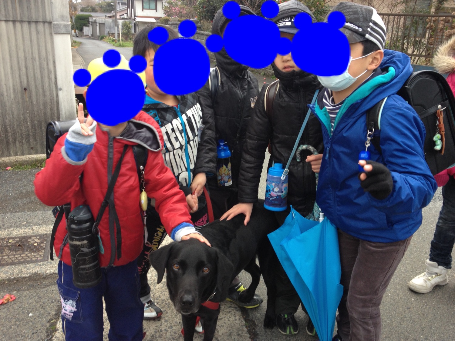 愛犬らむねは子供たちの登校時間に散歩に行くのが日課です。