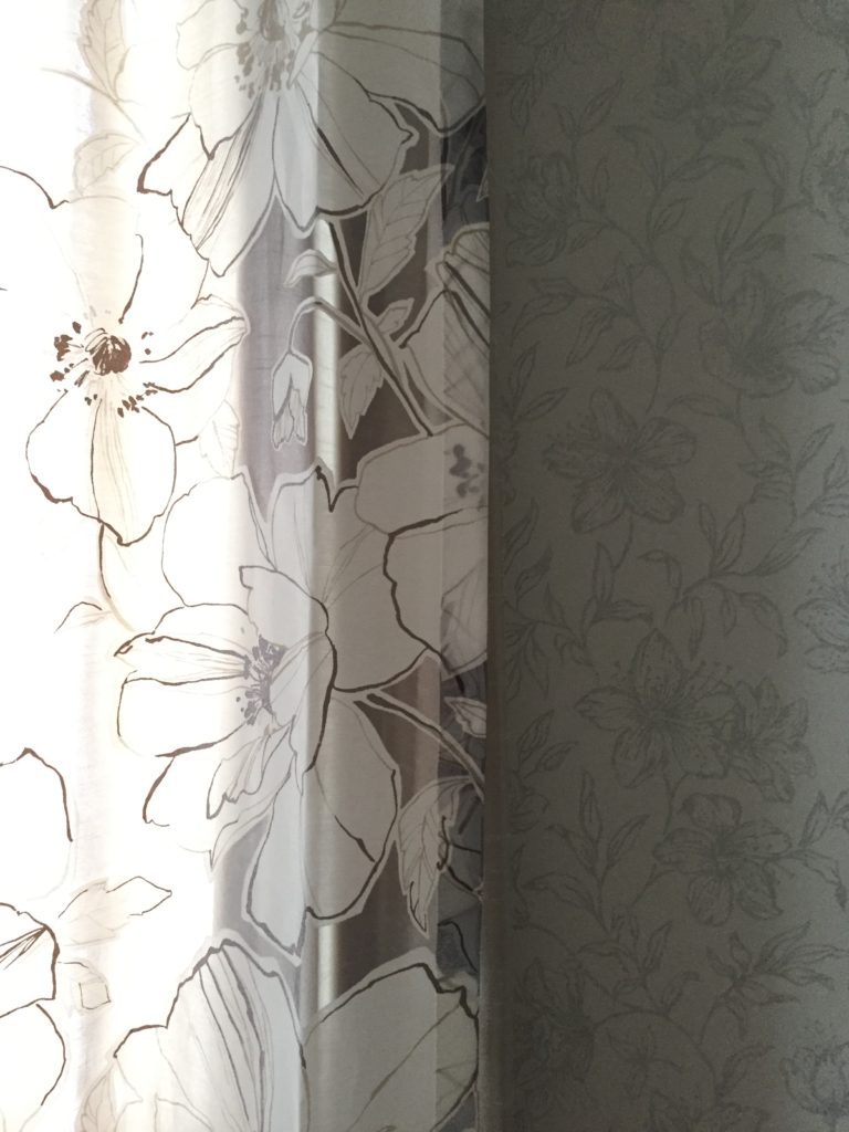 プリントレースの生地で のれんを作ってみました。透け感の少ない生地ですが、暗い感じはなく。