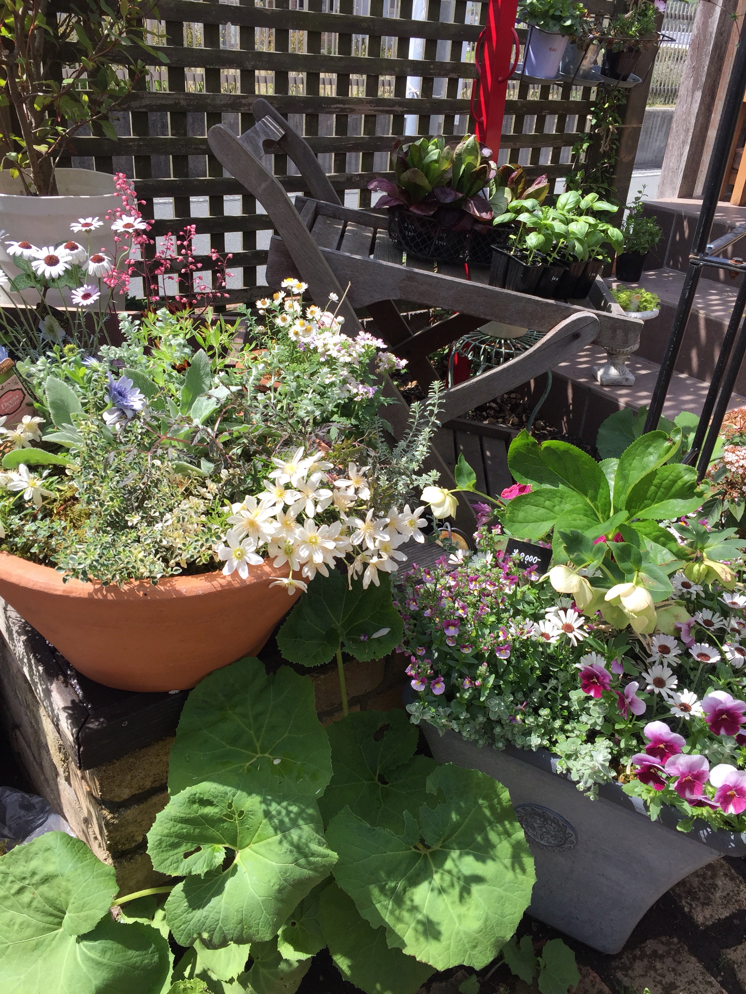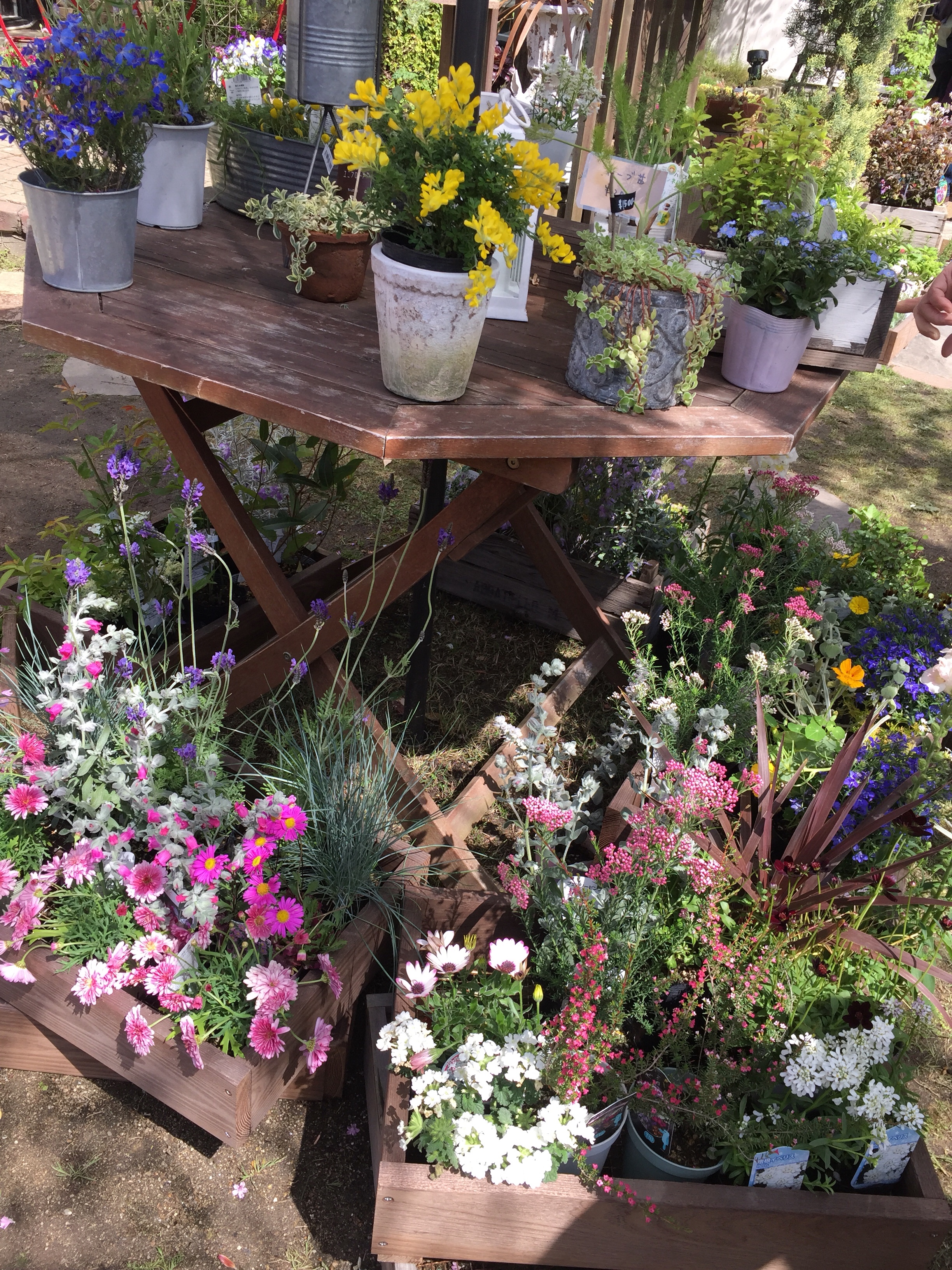 寄せ植えしたおしゃれな鉢(今は鉢もいろいろあって楽しい)を持ち帰る人たちの顔が