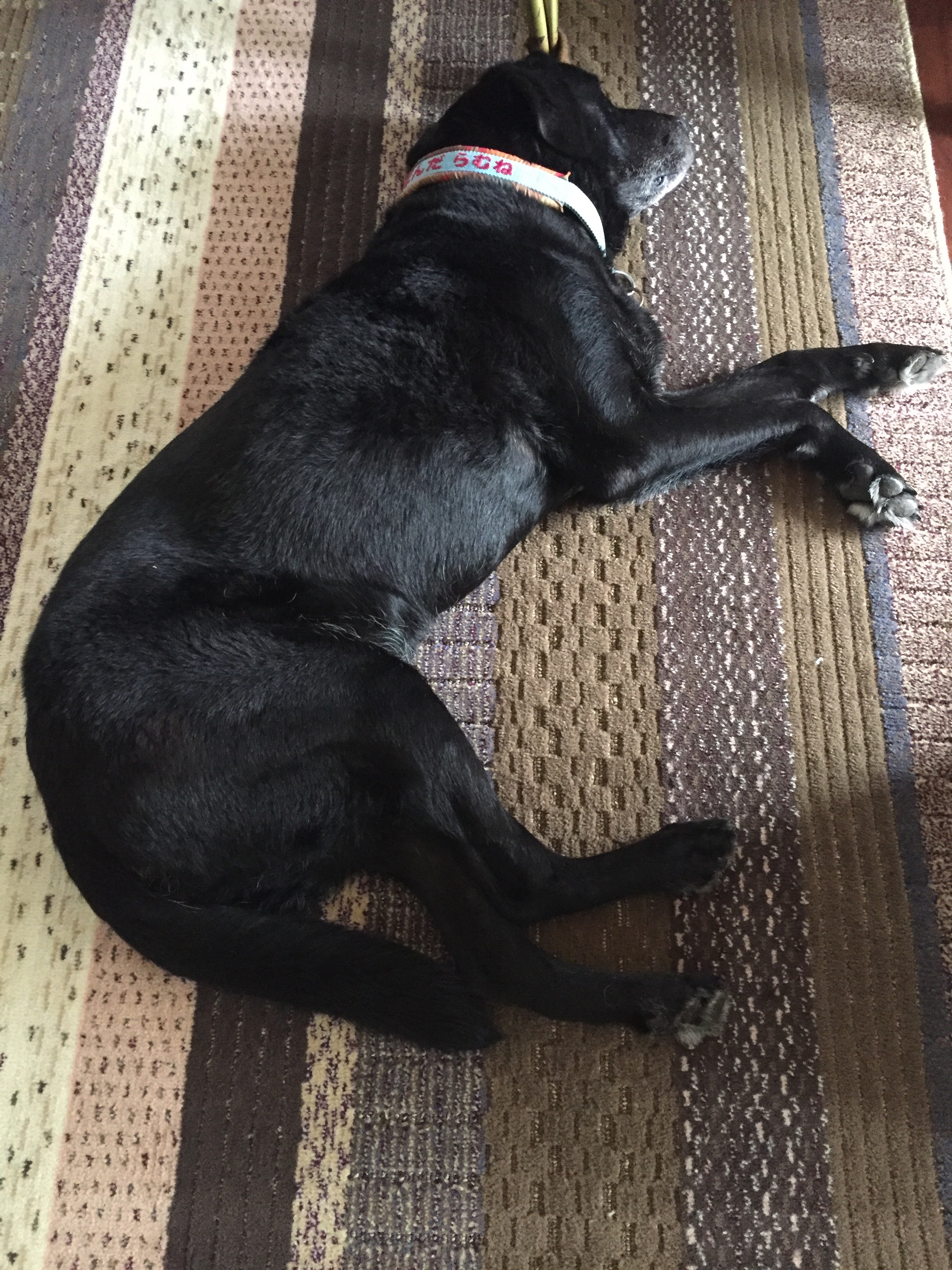 足触りが好きなので らむねはトイレトレーニング終了後からウールカーペットで育ってました。