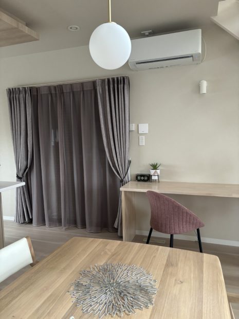 カーテンの面積が大きいので彩度は落として落ち着いた雰囲気に。