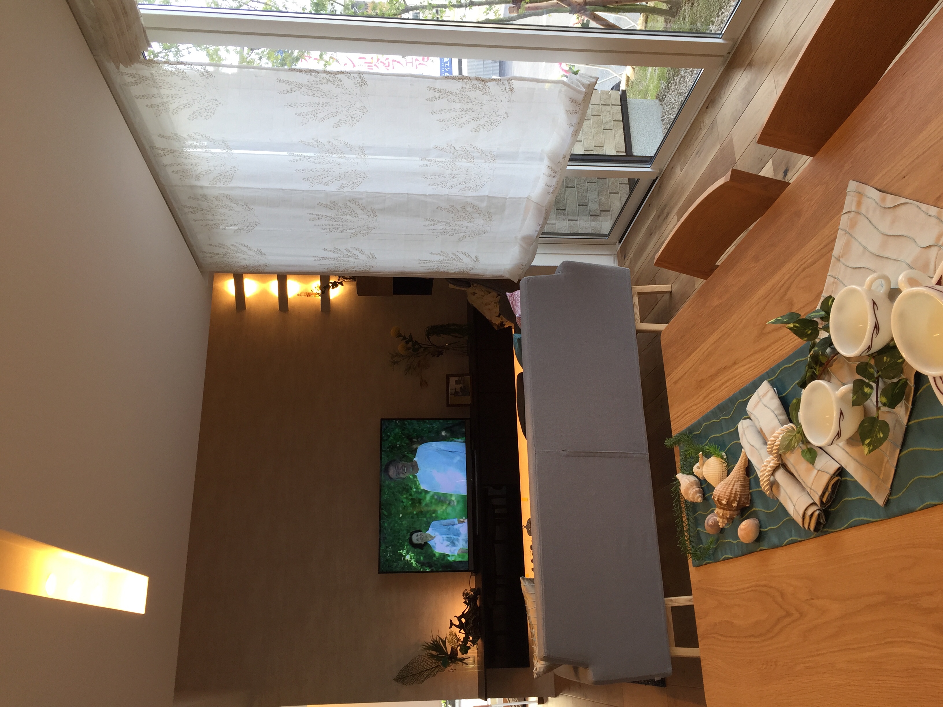厚手のドレープ生地よりも レースを見ている時間が長いリビング。
