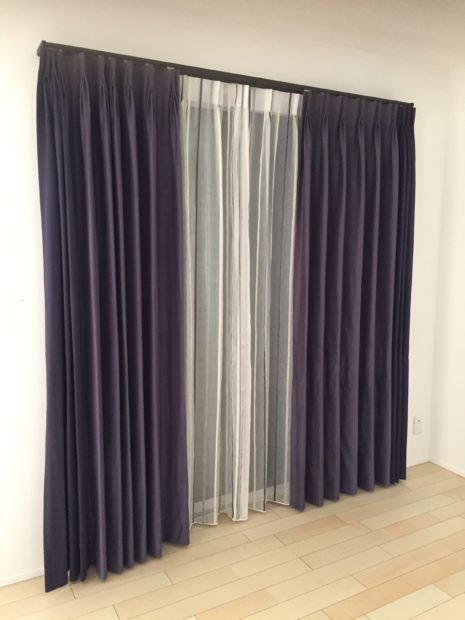 家具は黒を基調としたカッコいい感じになります。ということで、シックなカーテン。