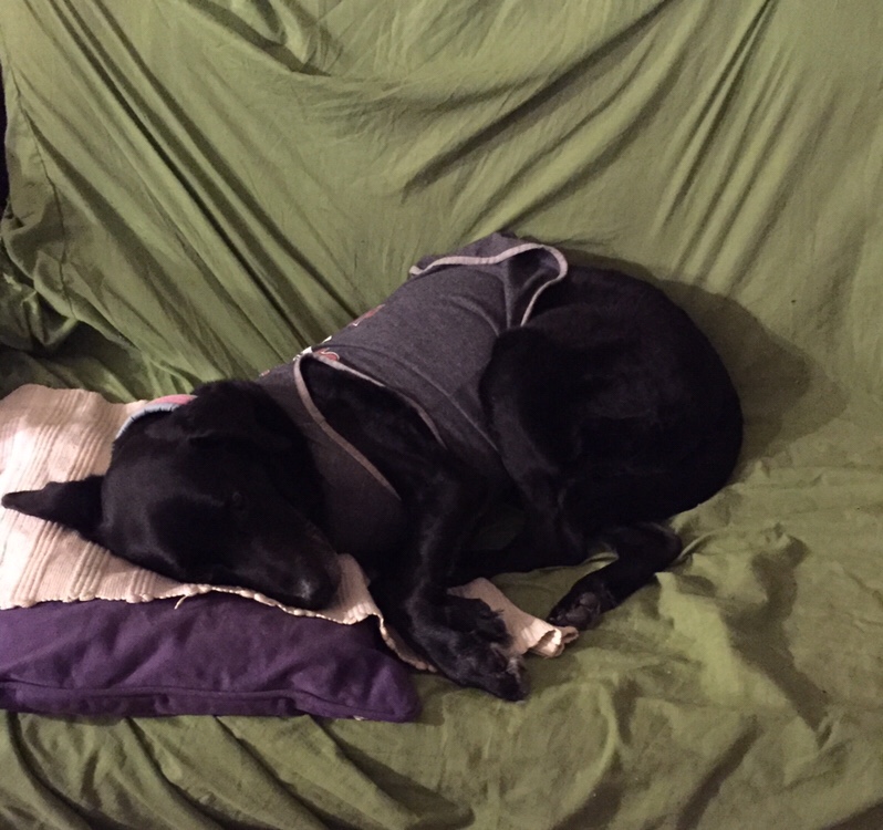 人なら当たり前ですが、クッションを枕にして寝ています。