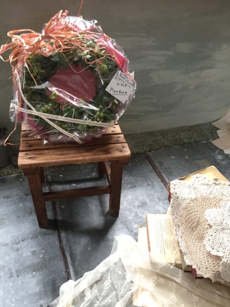 6月3日オープンの観葉植物を選んで、次は 壁に飾って欲しいと思う、リースをお願いに