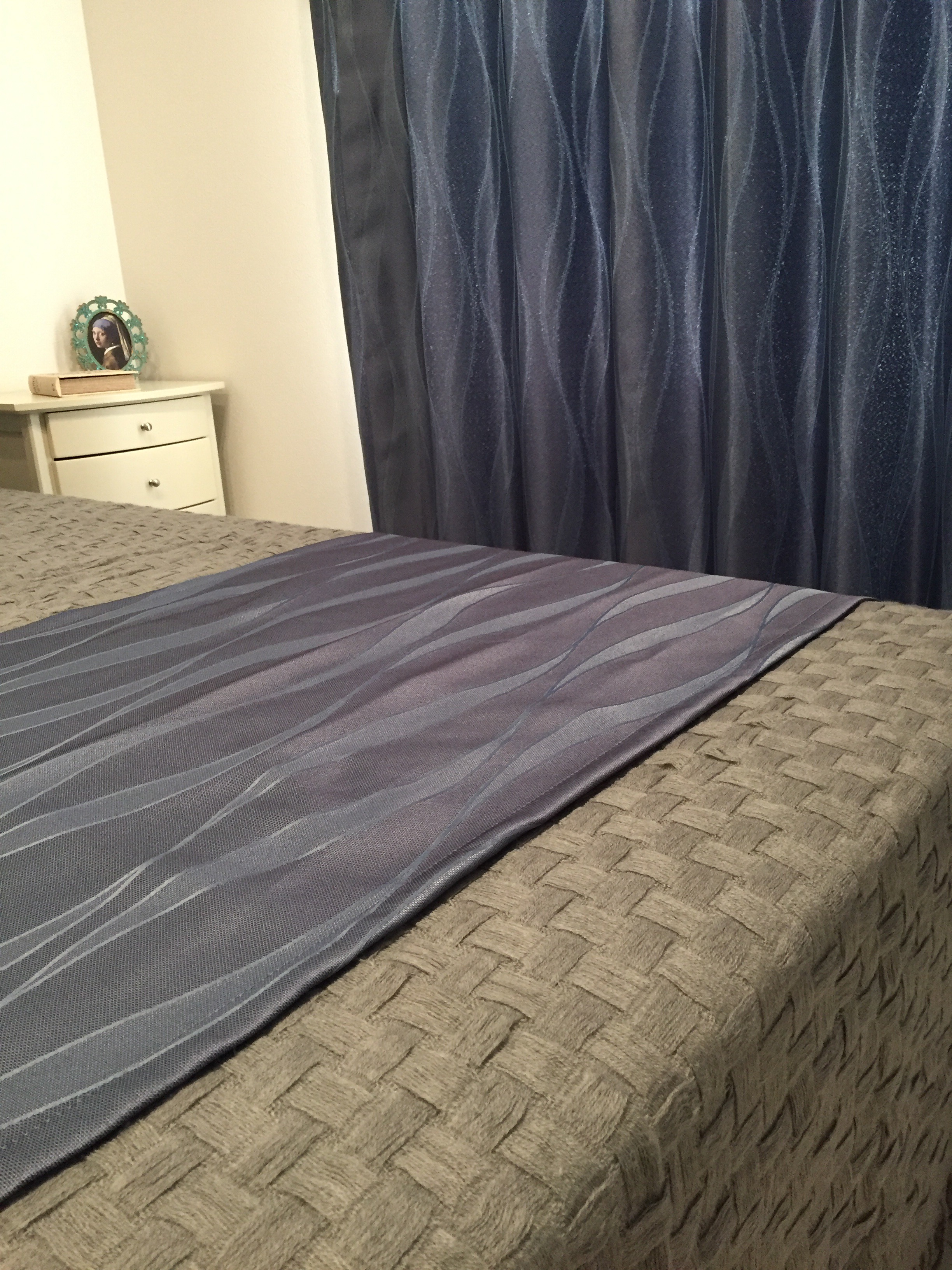 カーテンと同じ生地でベッドスロー作ってもらいました。