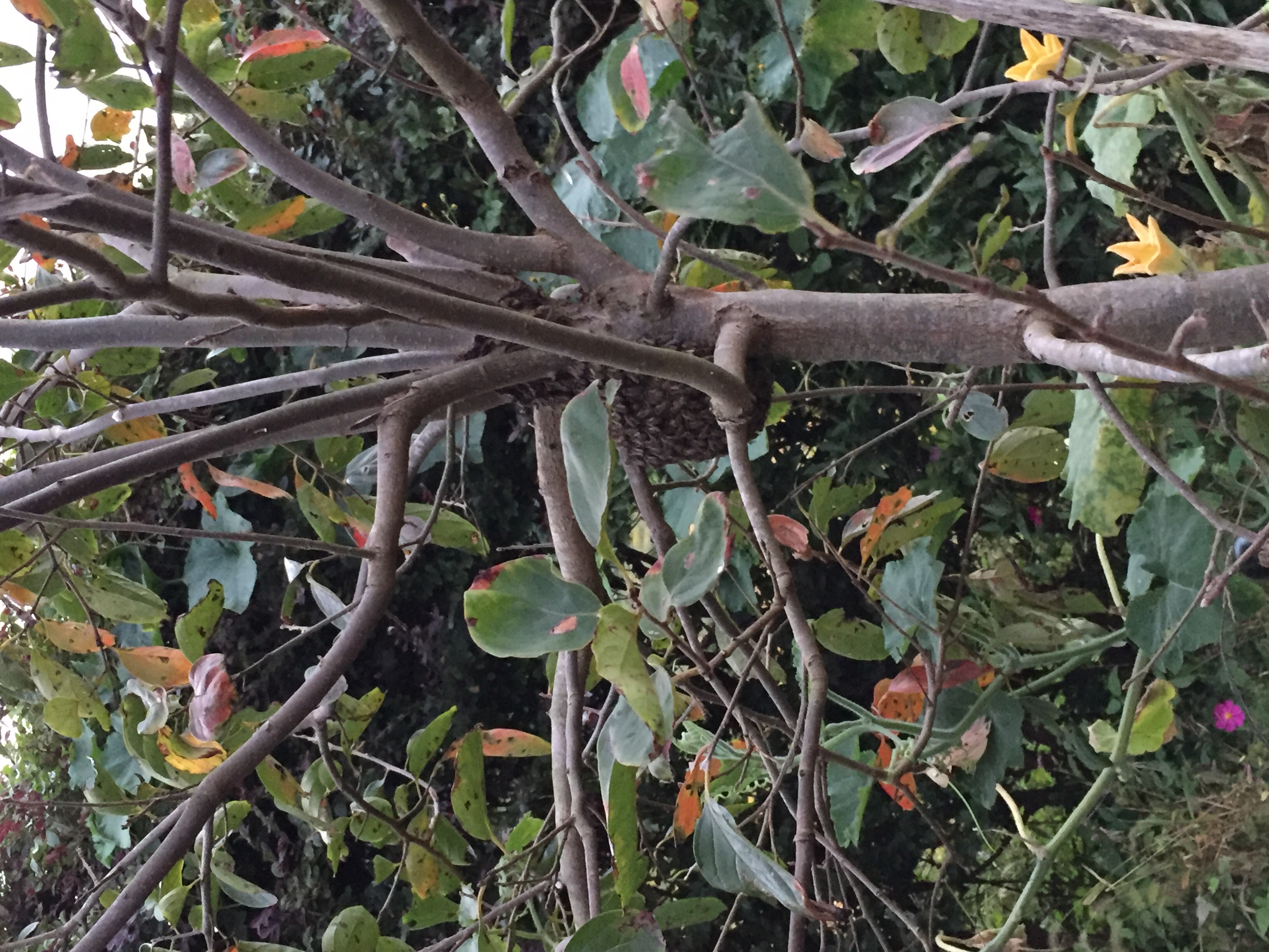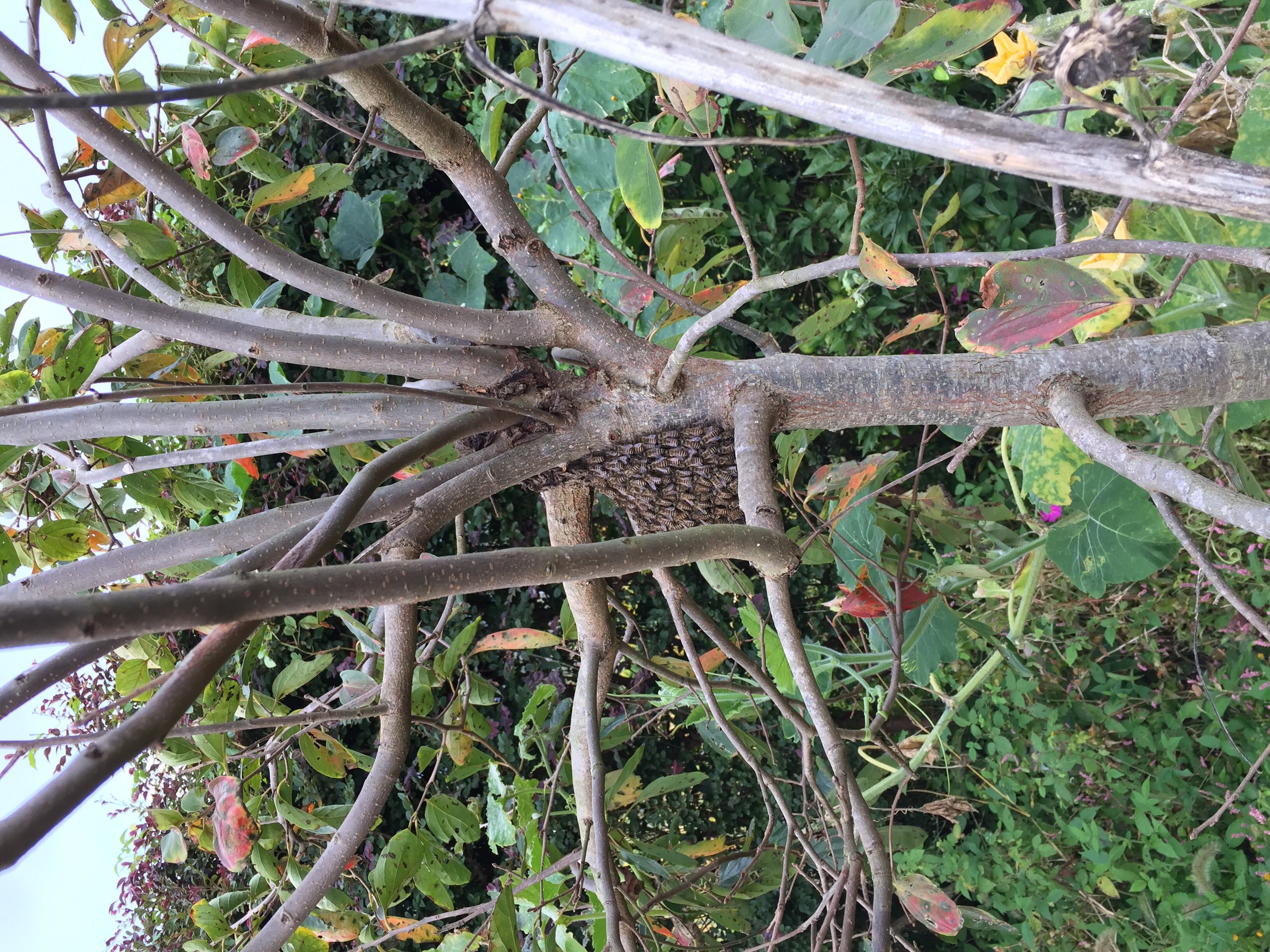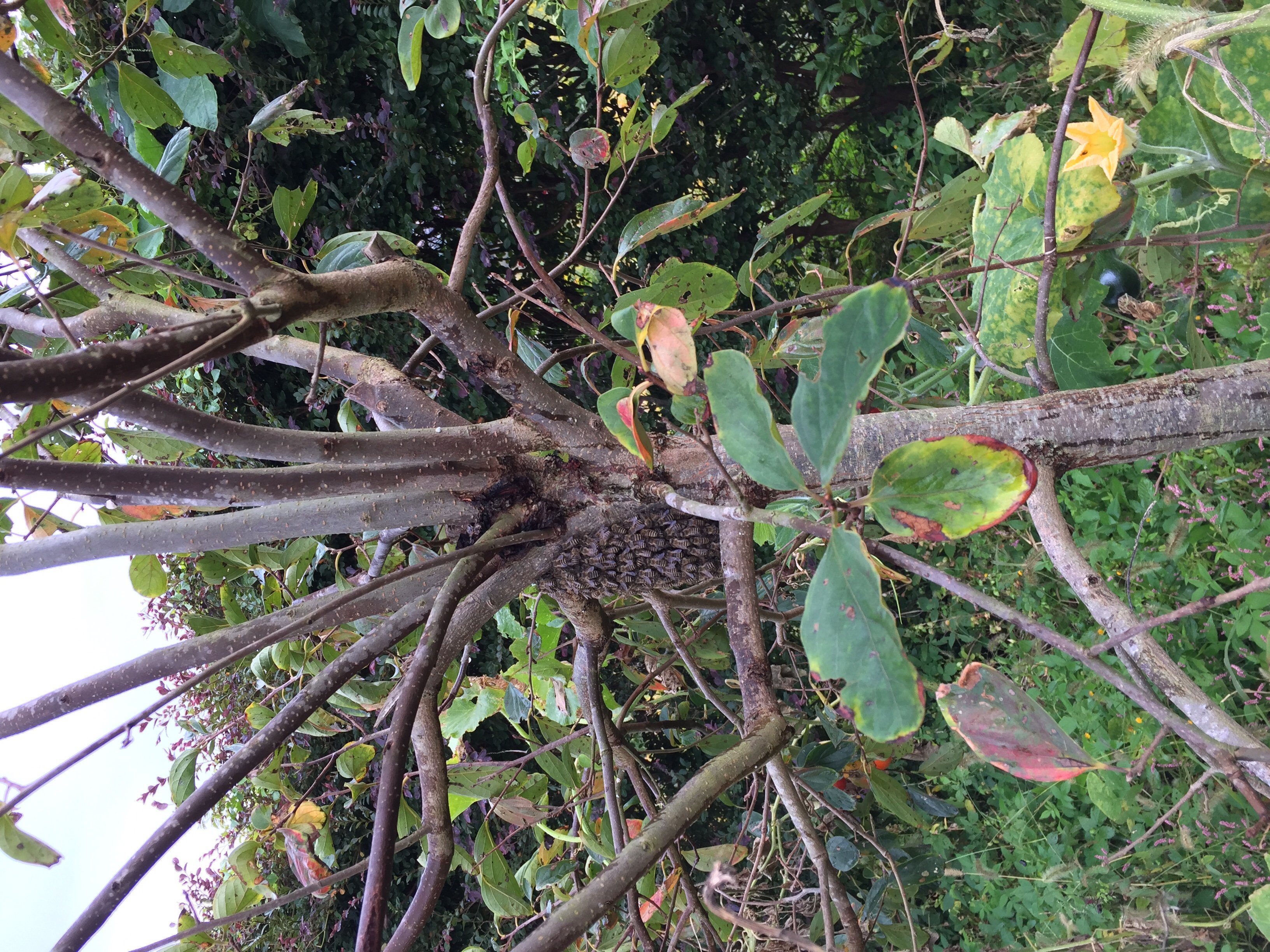 草刈りするぞーと外に出たら 蜂の群れ。