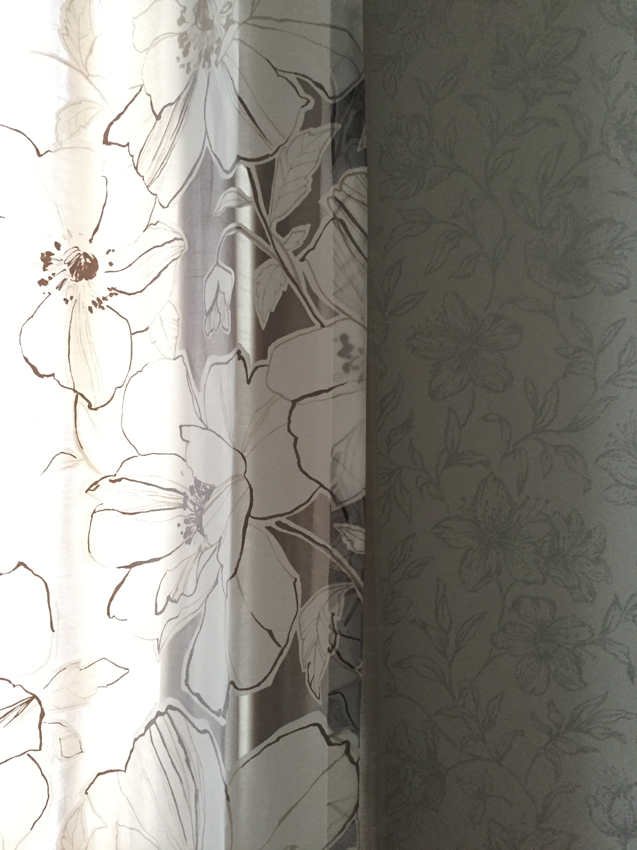 ベッドルームのインテリア 投稿日 2016年1月14日 更新日 2016年8月26日 著者 wpmaster カテゴリー インテリアコーディネート 昨日の続き、寝室。 シルバーの花柄のアクセントクロスが一面、あとは薄いグレー。 フロントレースは グレーのシアーに大柄な花。 ドレープはホワイトグレーですが、日差しで色飛んでます… 冷たいイメージのない優しい雰囲気のモノトーンです。
