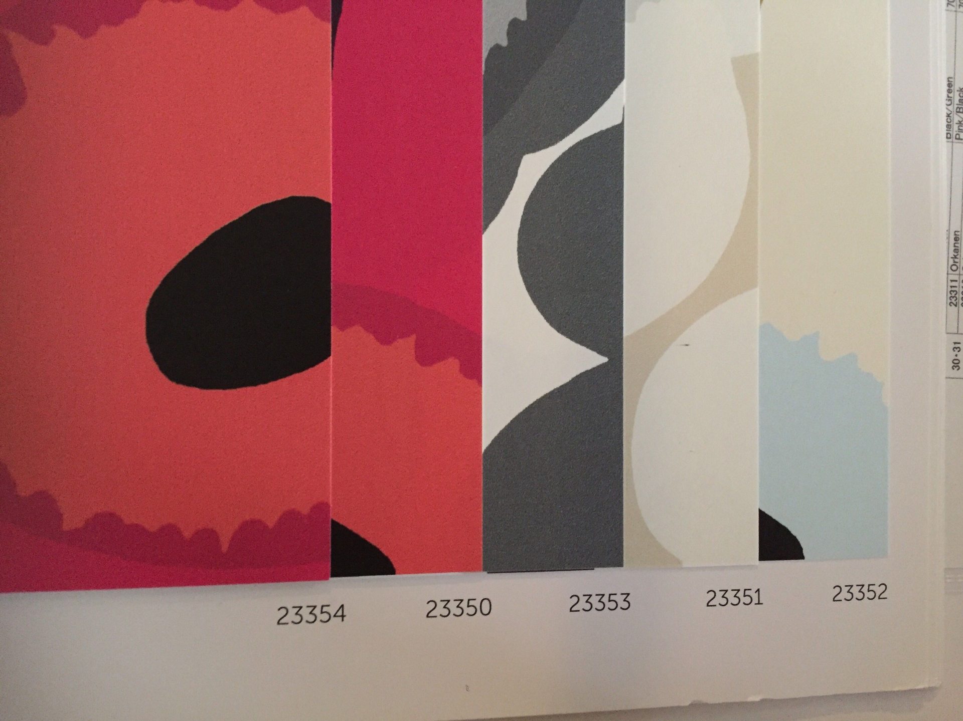 クロスの打ち合わせ。お客様からインパクトのある 大きな花というご要望。 やっぱり最初にこれを見せたい!ということで、インテリア紅葉さんに サンプルブックをお借りしました。