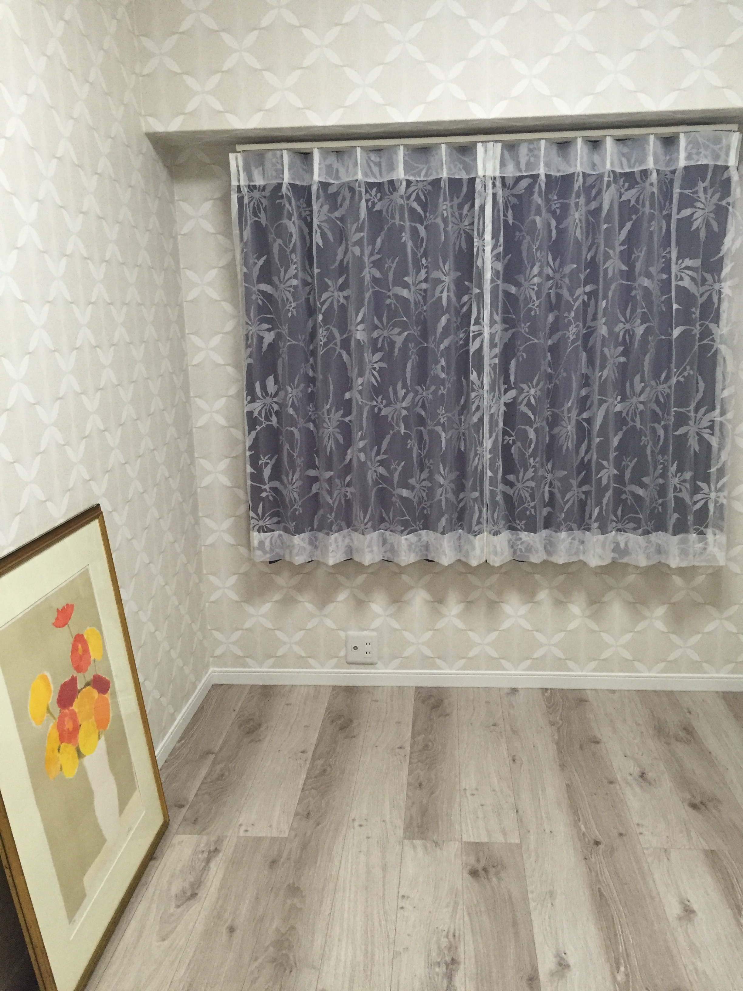 わかりにくいですが 幾何学模様のカーテンはパープル。