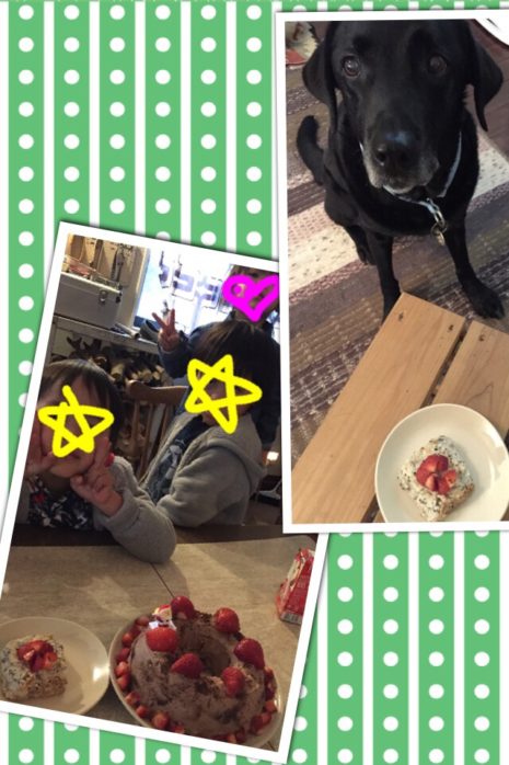 らむねもおからのケーキにそちらのケーキから移動させてイチゴをトッピング。