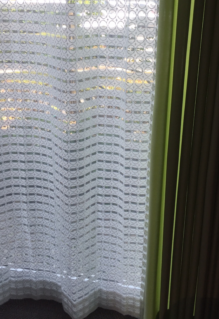 丸と横ストライプの組みあわせ。これ、リーズナブルでモダンにもちょっと和テイストにも使えそう。