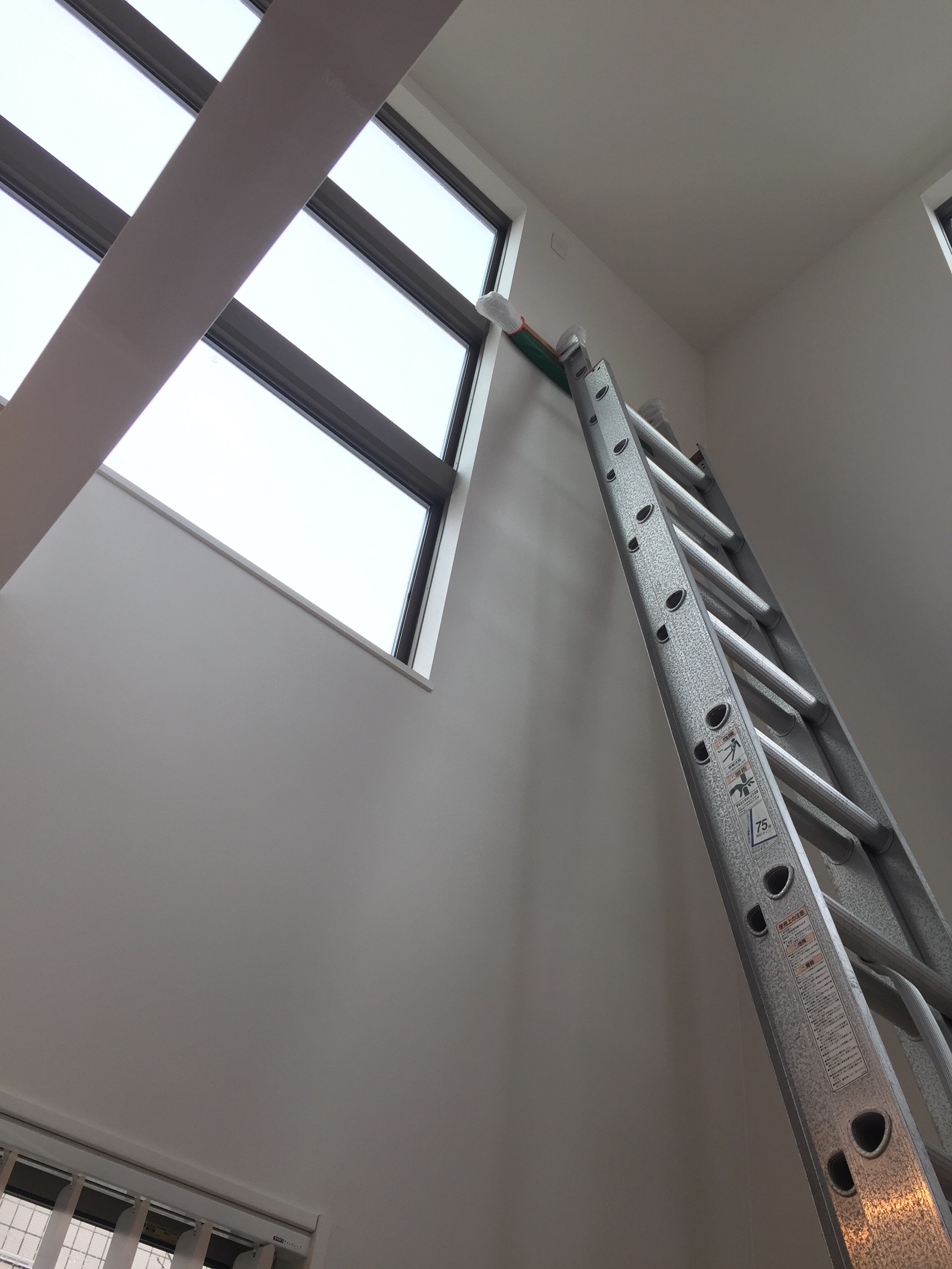 スライドしてのびる梯子の上に新しいコンセントがかすかにうつっております。