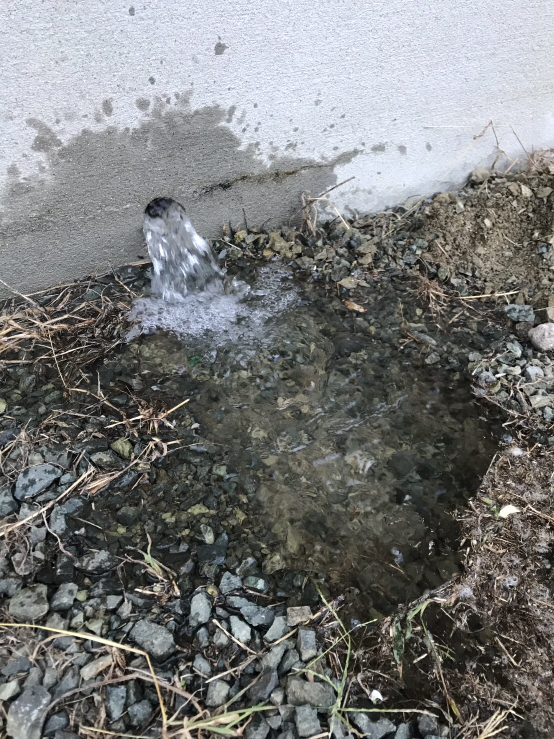 基礎に穴をあけて ひたすら水を出している状態。水が吹き出ています。