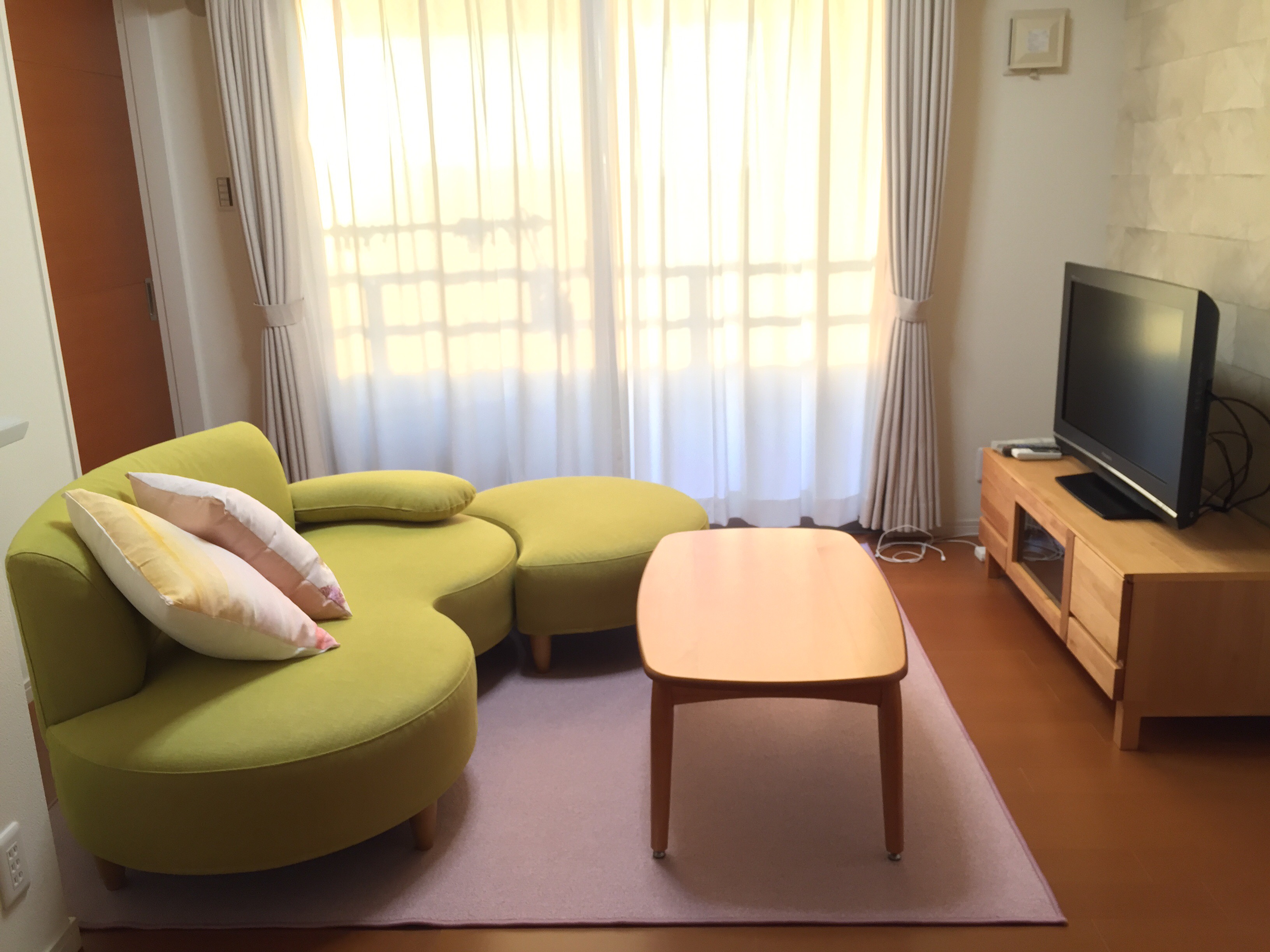 ソファーではなく かわいい赤い座椅子がおいてあるお部屋でした。