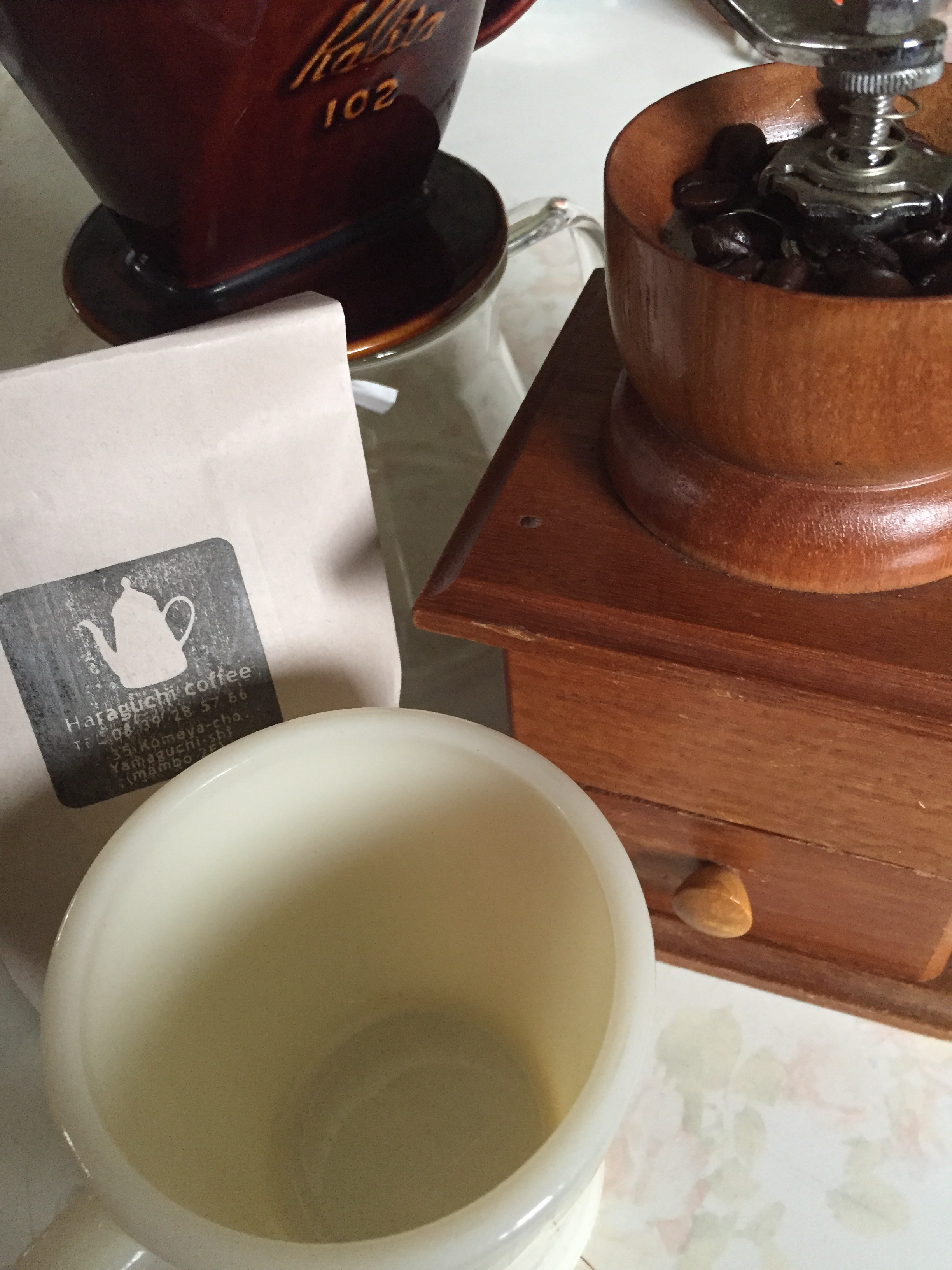 好きなもの 投稿日 2017年9月25日 著者 wpmaster カテゴリー ひとりごと カテゴリー インテリア雑貨 山口のおみやげ。 原口珈琲の豆、いただきました。 こちらのお店で初めて珈琲 飲んだ時 わぁ、おいしいと思わず声が出た。というお味。ふーっと一息ではなく。 お湯沸かしながら、豆をひいて 時間かけて飲む。 毎日とれる時間じゃないので 味わって。 夫の実家で見つけた古いミルに お気に入りのファイヤーキングのアイボリーのマグカップ。 好きなものは うつわも好きなもので飲むとおいしさが増す気がします。 ピカピカの豆。 おいしくいただきました。 残った豆はボールジャーに入れて。