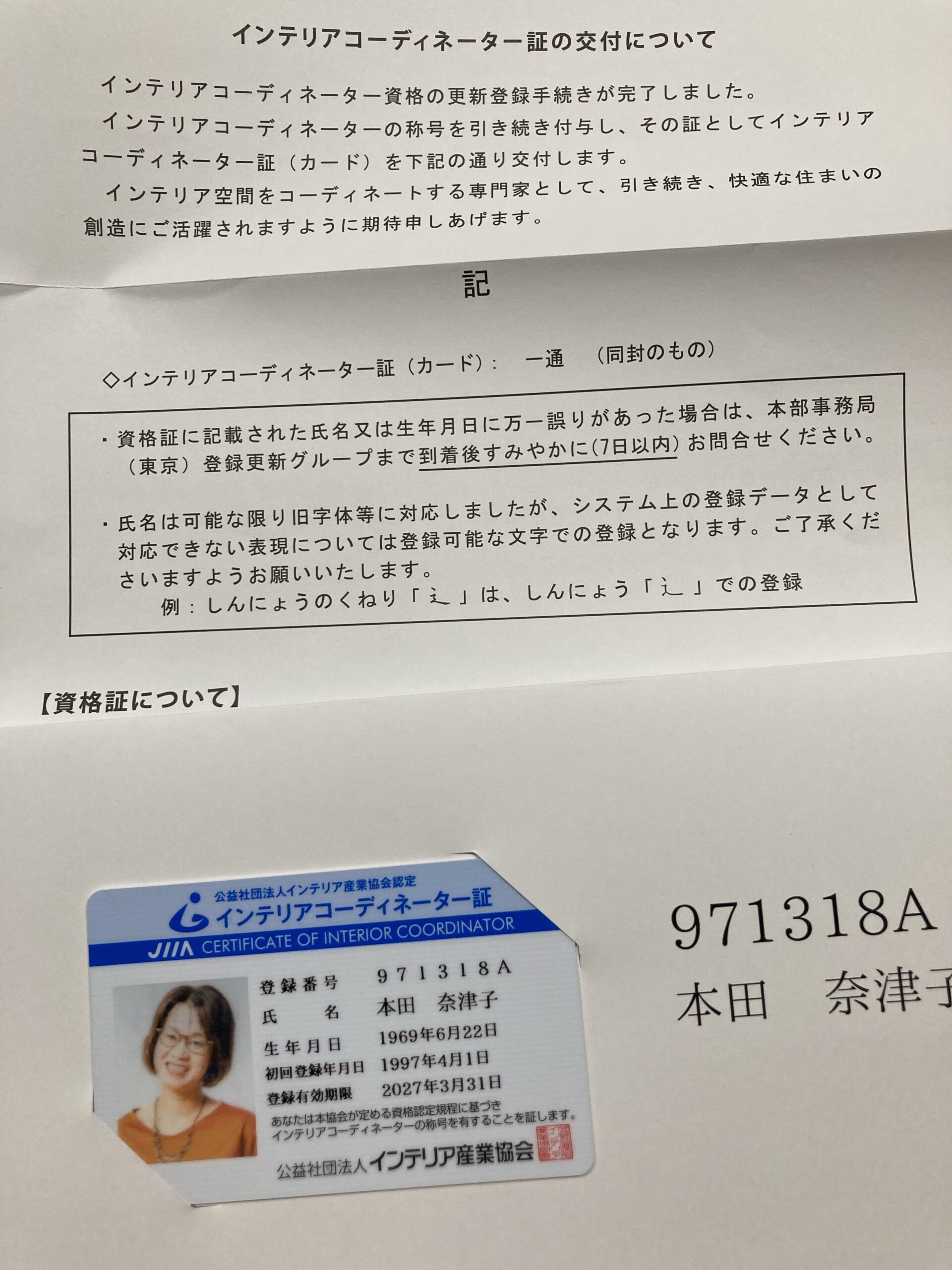 新しいコーディネーター証が届きました。資格に合格する前からこの仕事をしていたのですが、次の有効期限の西暦の下一桁が同じ数字で、あー長いことこの仕事してきたんだなぁとつくづく思います。
