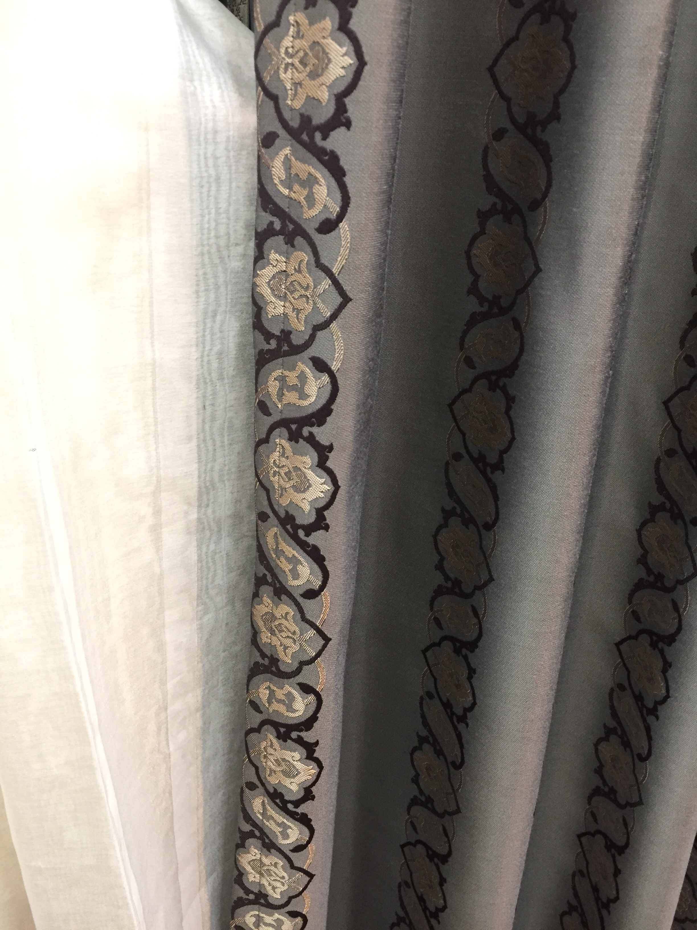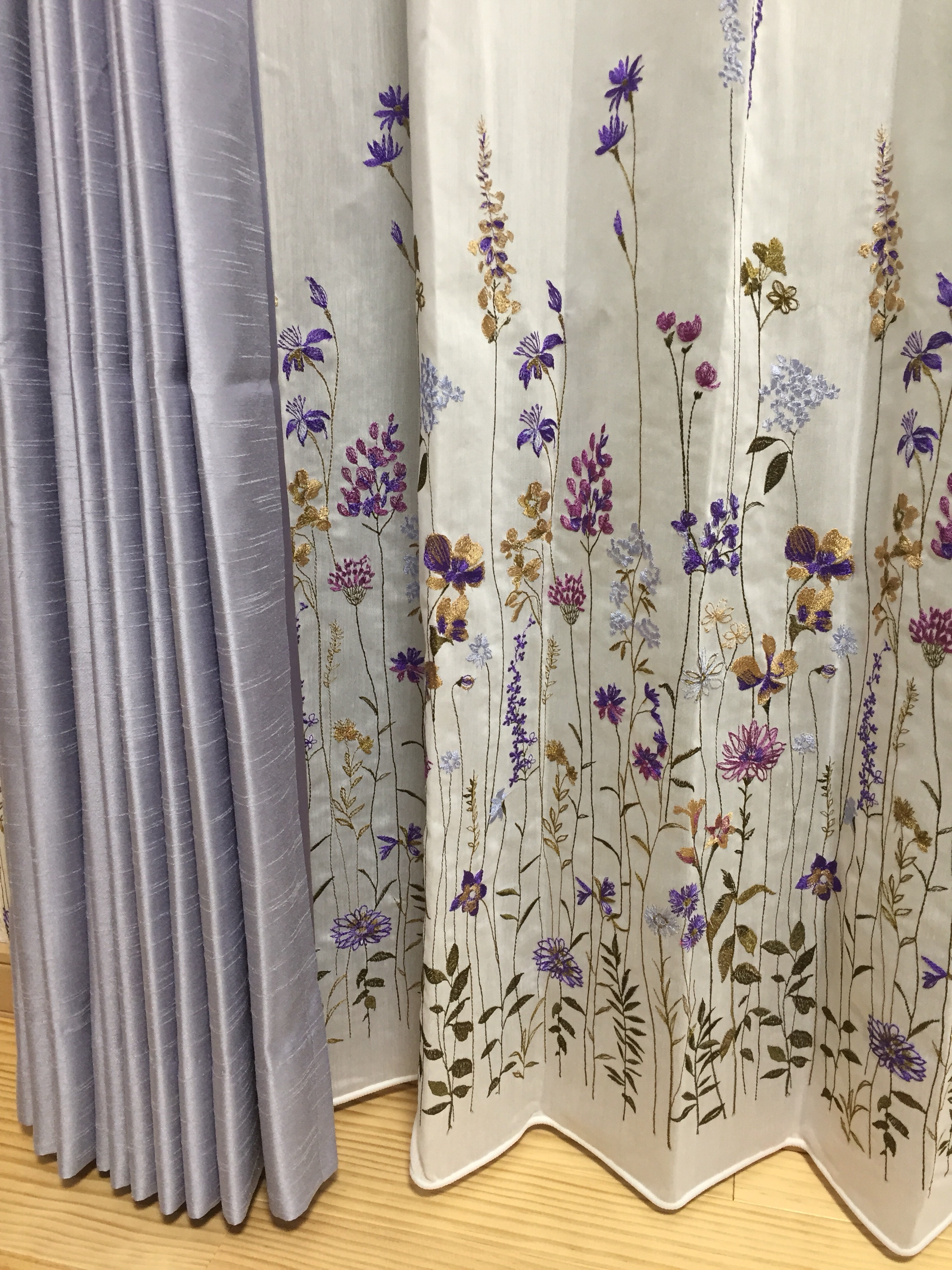 レースは二枚重ねのモアレがキレイな川島織物定番のもの。ドレープも川島織物セルコン。