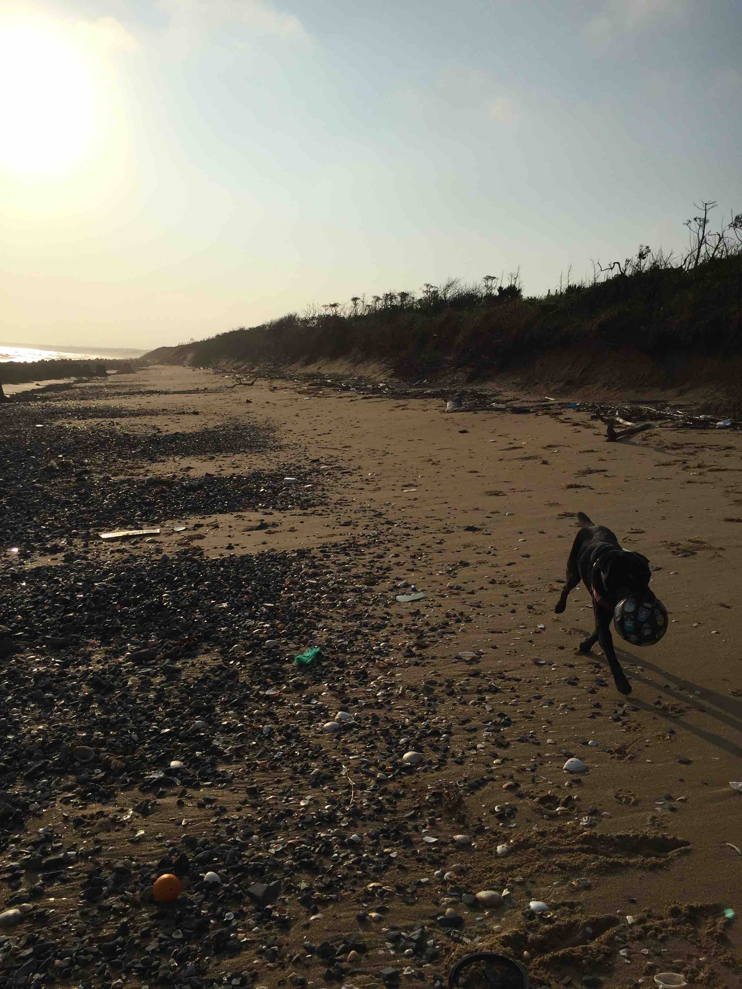 浮き輪も打ち上げられてたけど、らむねが喜んでくわえてきたのははボール。