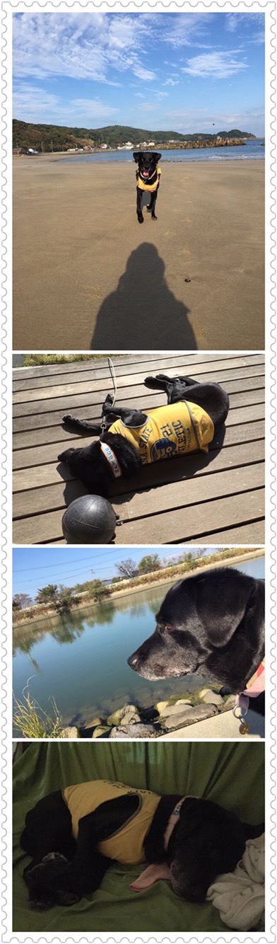 ①朝から海で全力疾走。呼ぶと走ってくる。飛び跳ねるように走る。