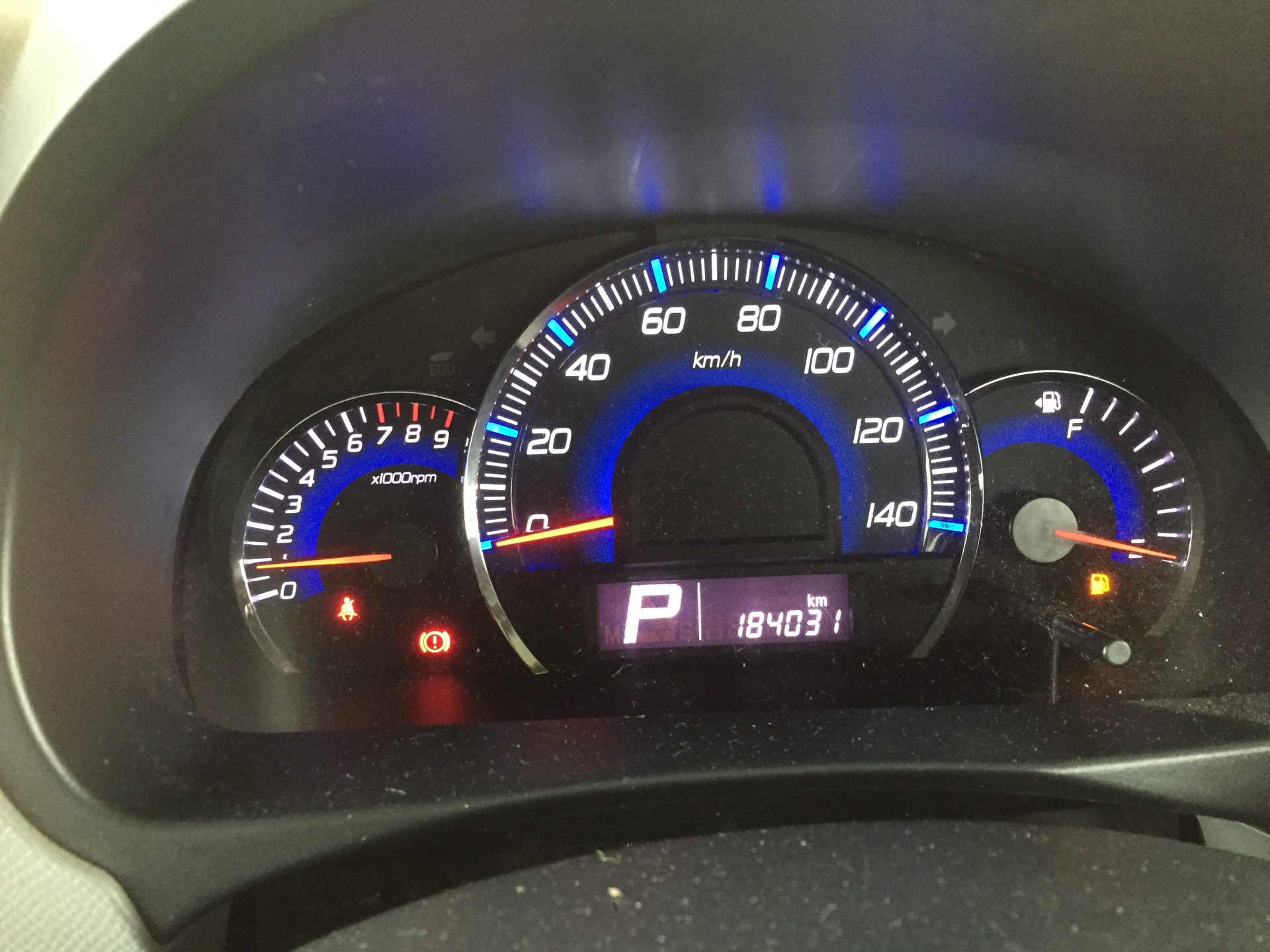 9年間お世話になった 晴れた日の水平線近くの海の色のような 深いブルーの ワゴンR 18万キロを超えて、次の車検は もろもろの部品交換が必要。