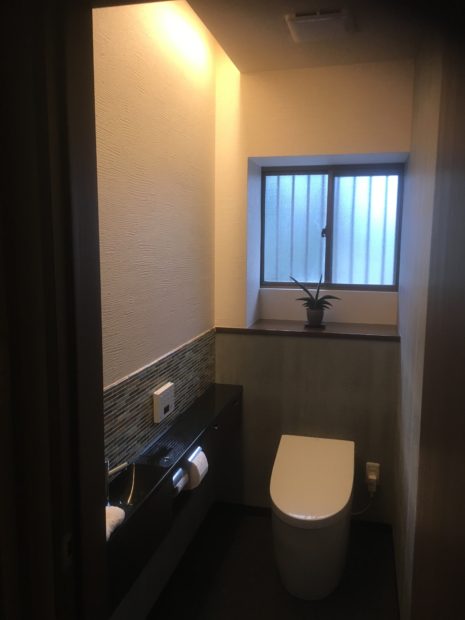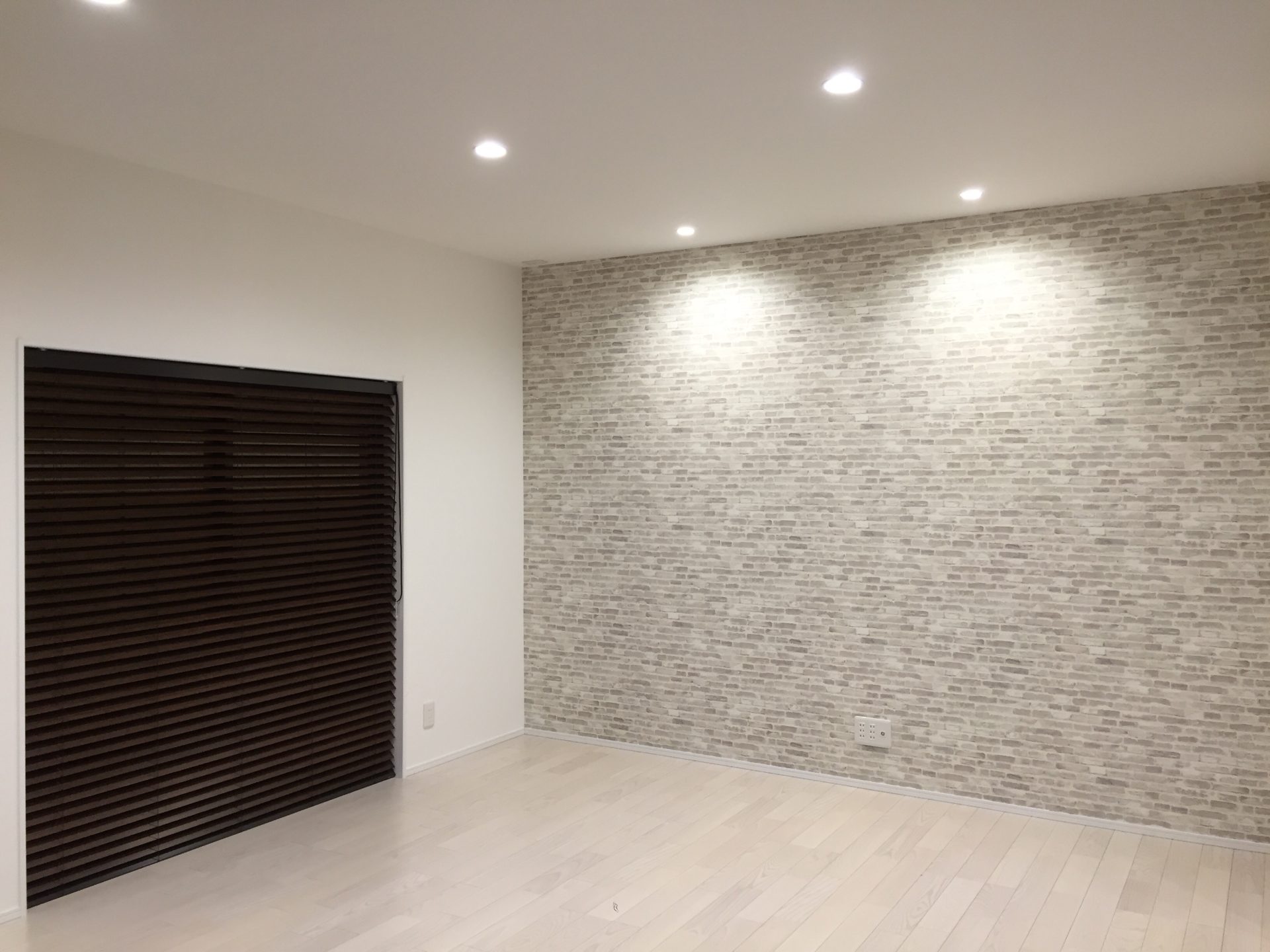 パッと見、タイル貼ってるみたいに見えるのは ダウンライトのおかげでしょうか?