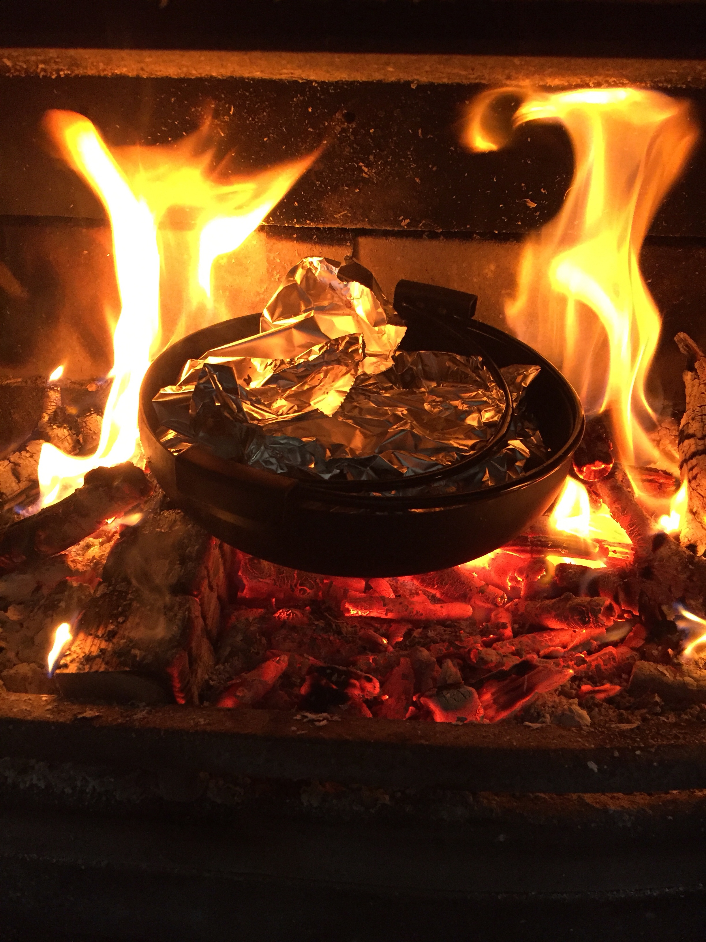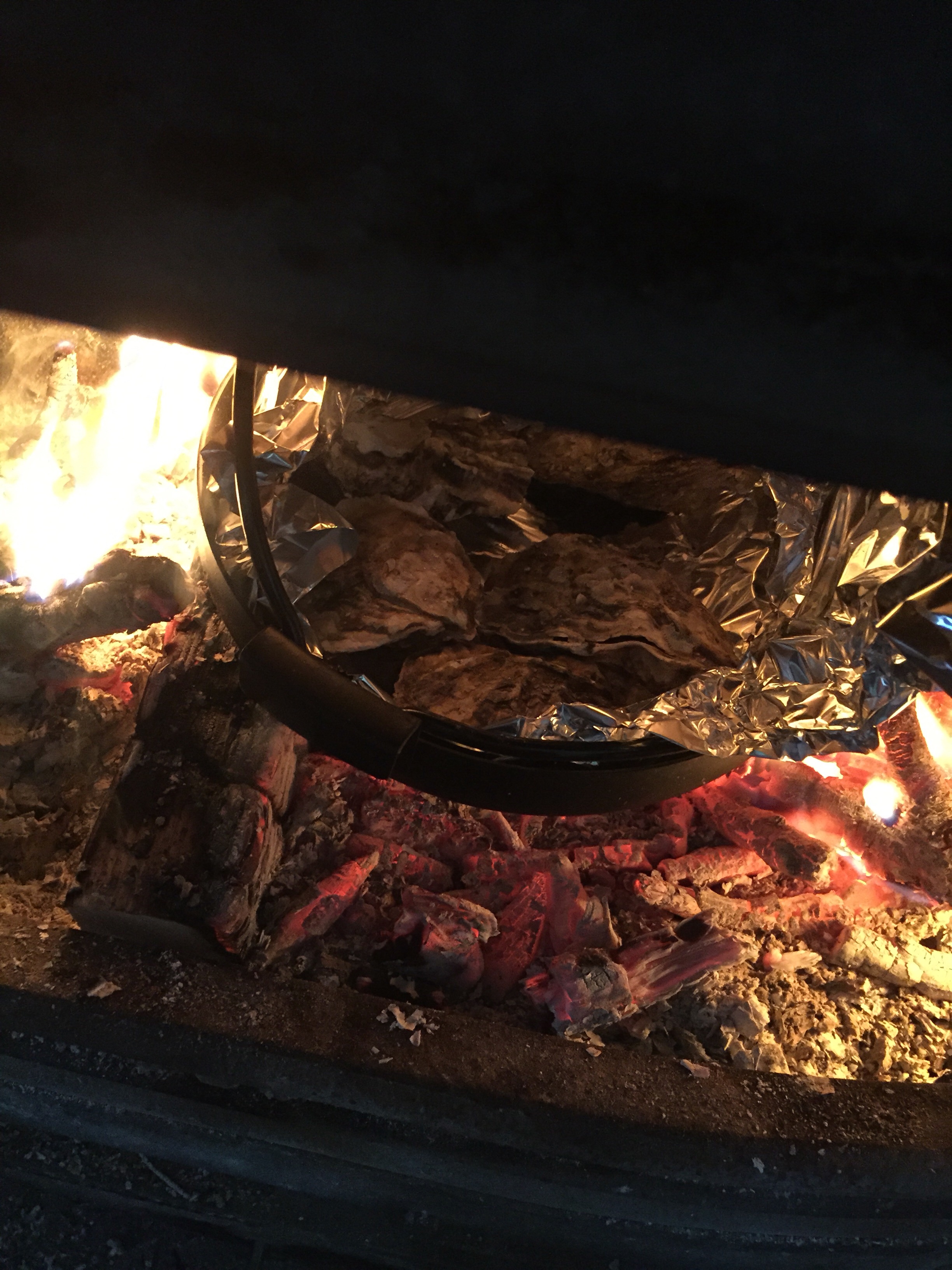 アルミホイルをちょっとあけると貝の口がちょっと開いてる。