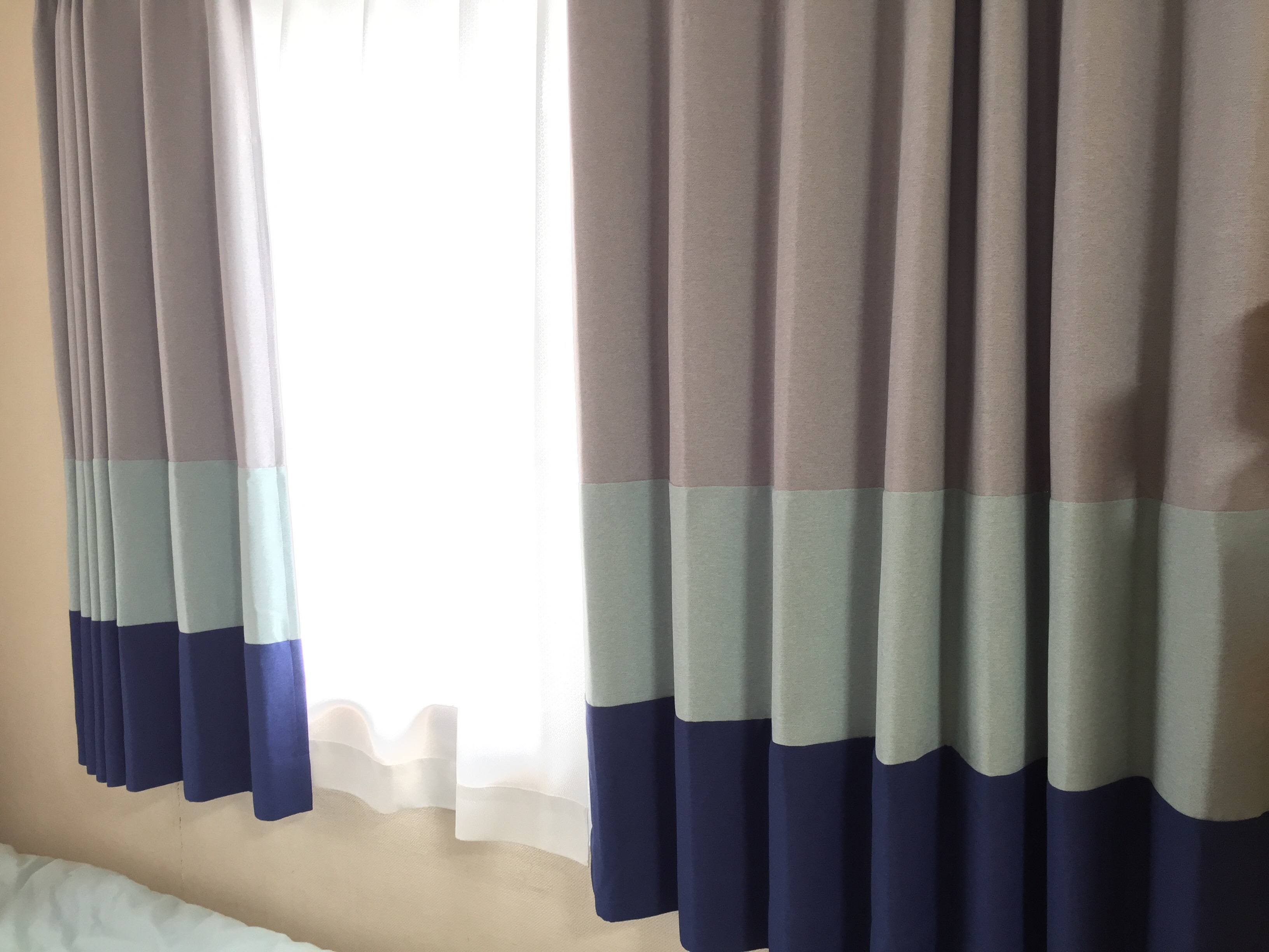 ならば簡単に遮光カーテンでよいのでは。ということで 裏表の生地の見た目があまり変わらない遮光カーテンに。