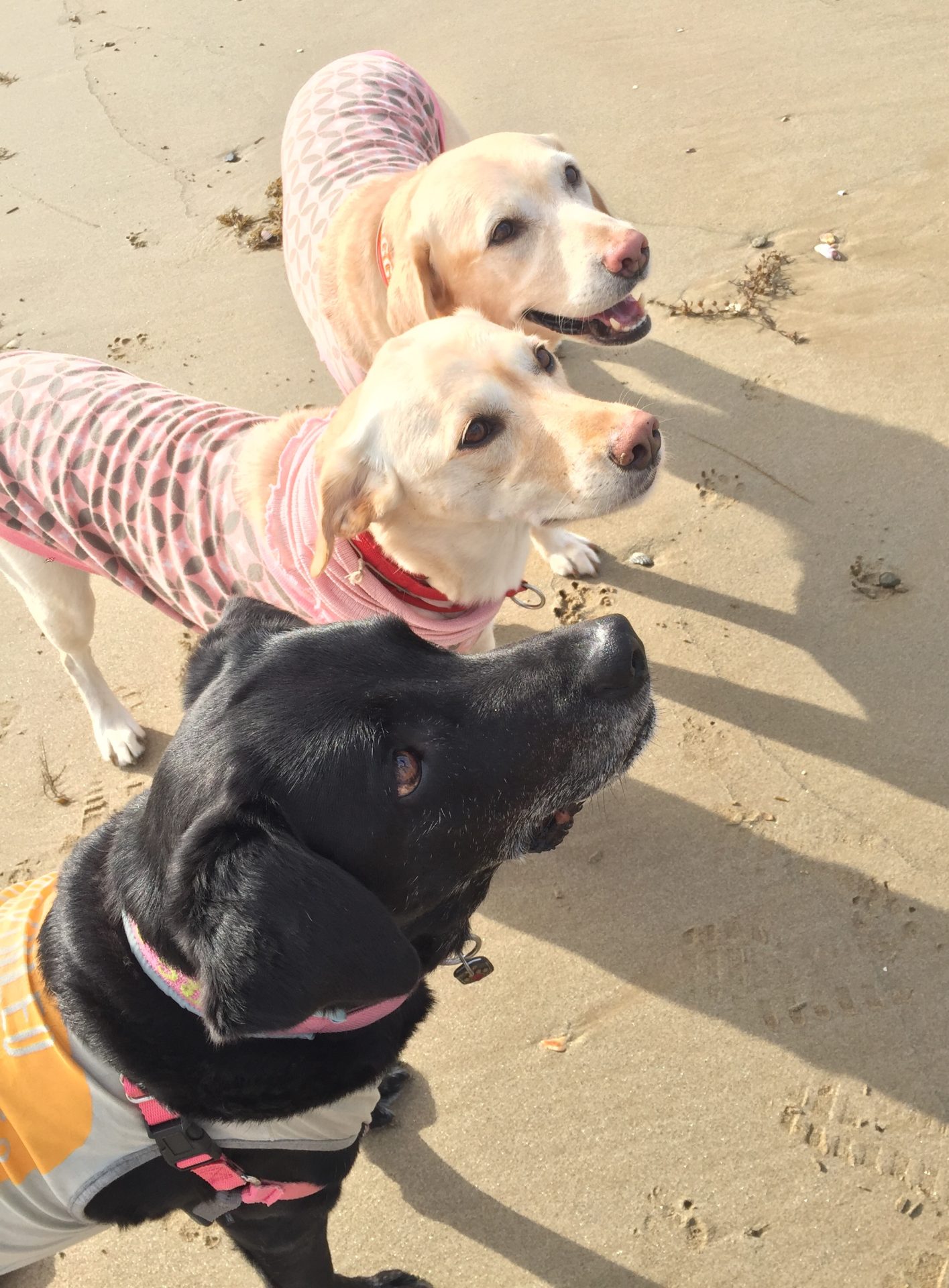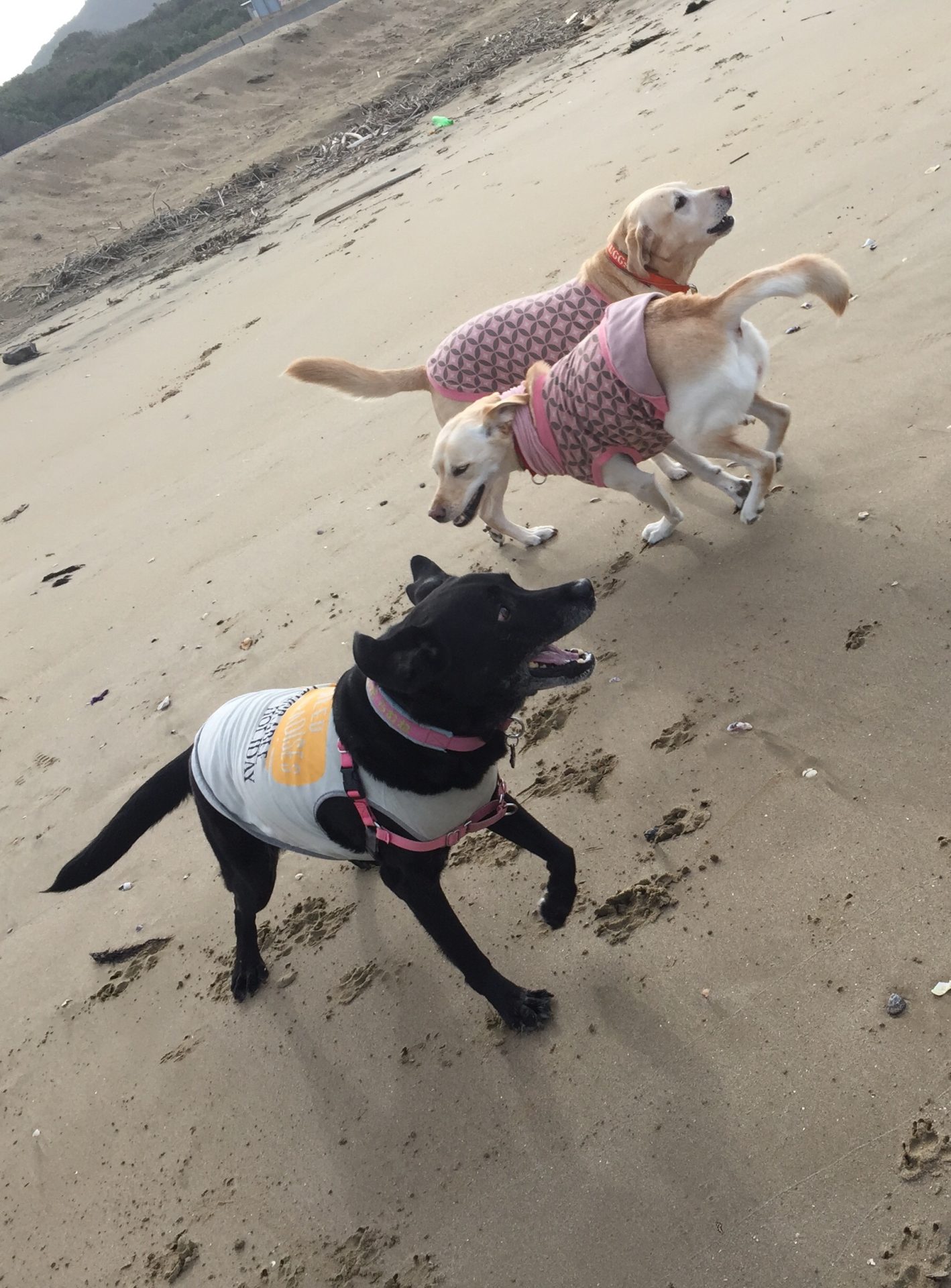 らむね、整体の日。施術をしてくれるわんこ整体アルマティアのイエローラブの女子たちとはとっても仲良し