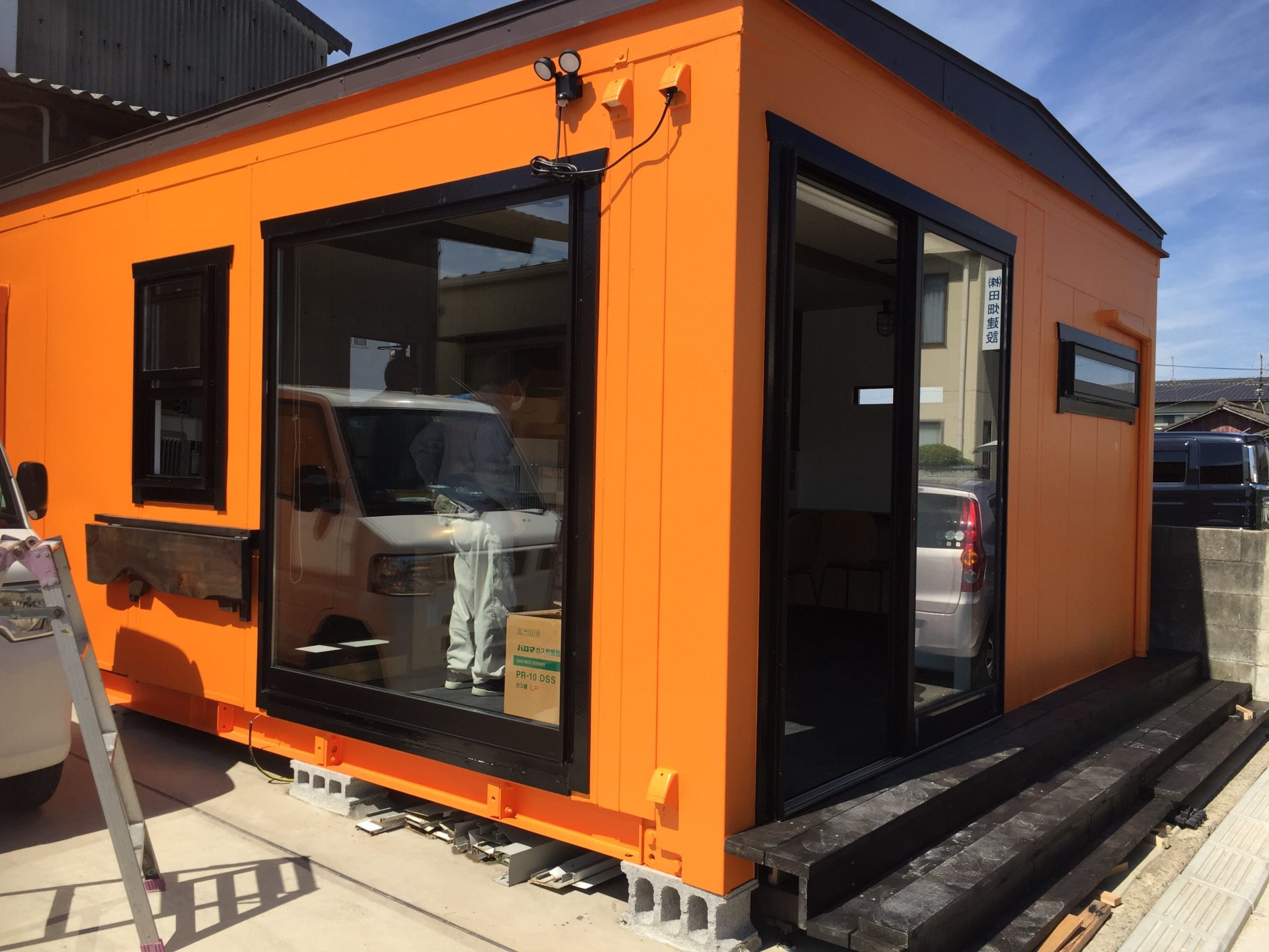 大漁旗のイメージで。海の色に映えそうなオレンジ。