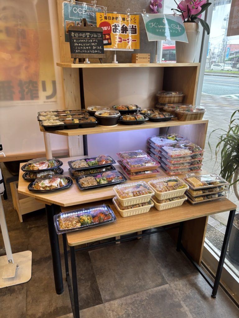 丸い大きな柱を囲むように棚を設置して、人気のお弁当もたくさん並べられるように。