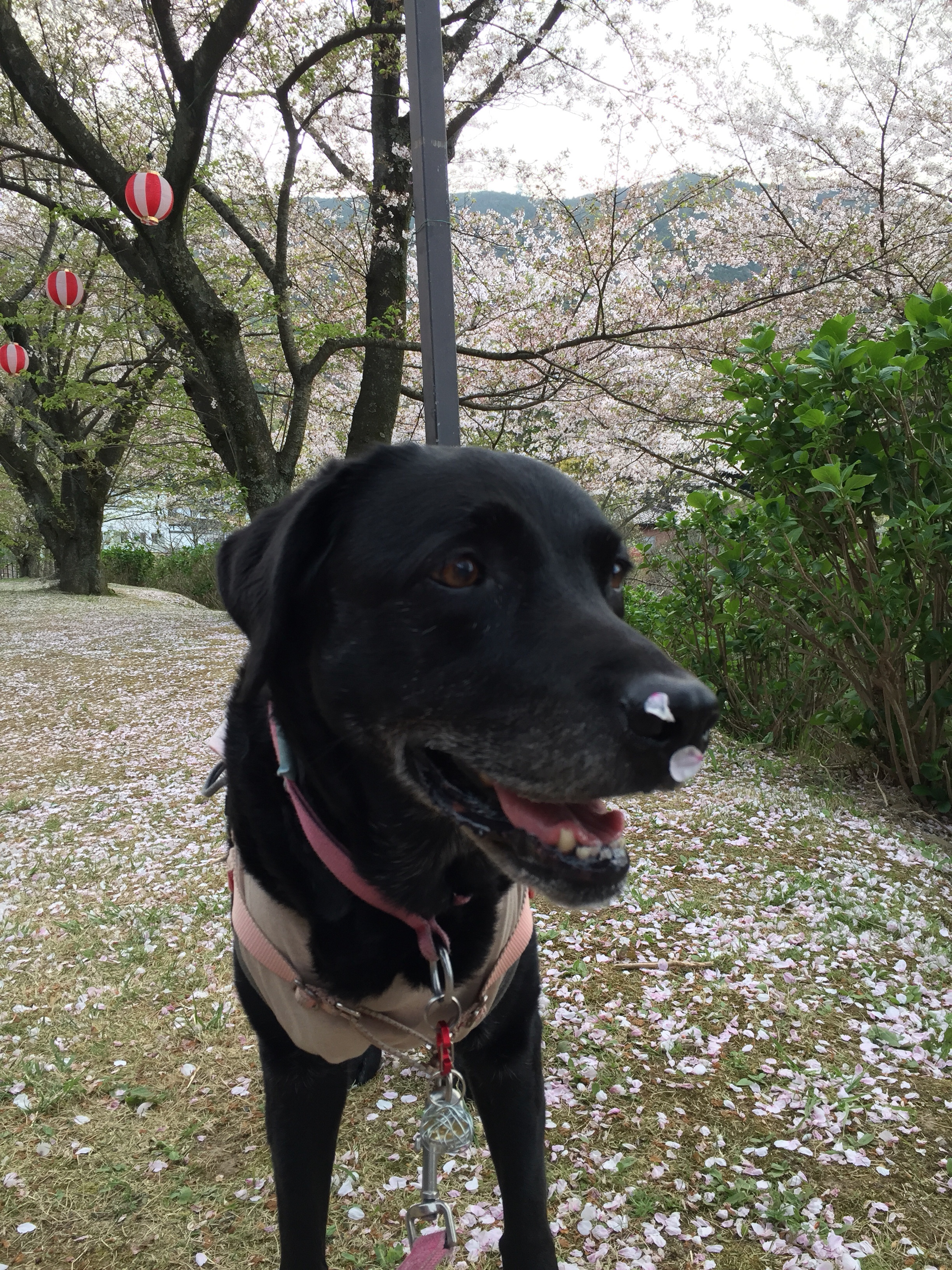 桜吹雪が舞っていて、ピンクのじゅうたんになりつつあります。