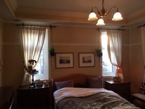 ベッドを真ん中にして窓が2つ。頭に直接光が来てない窓の位置。