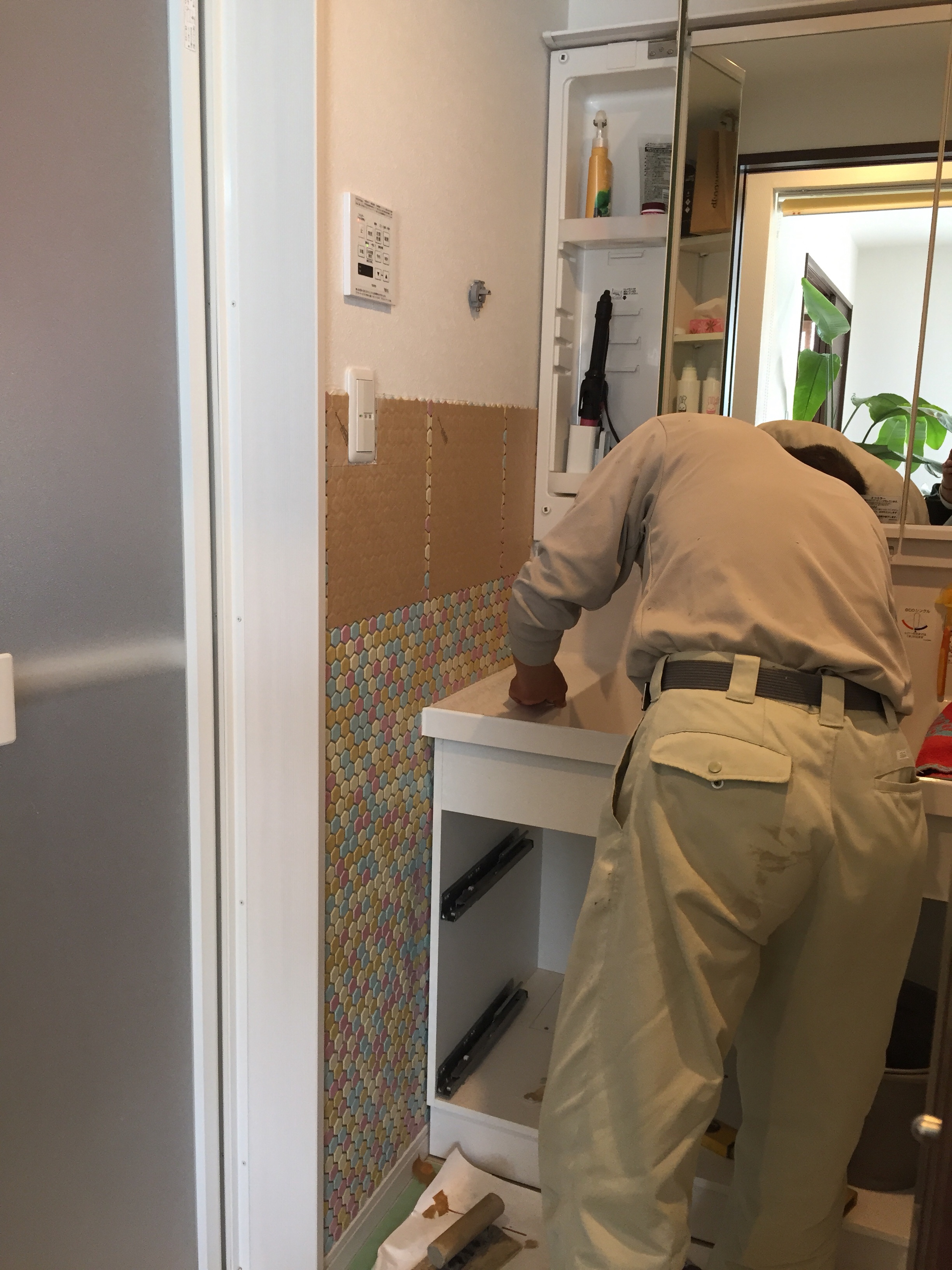 モザイクタイル 貼ってます。