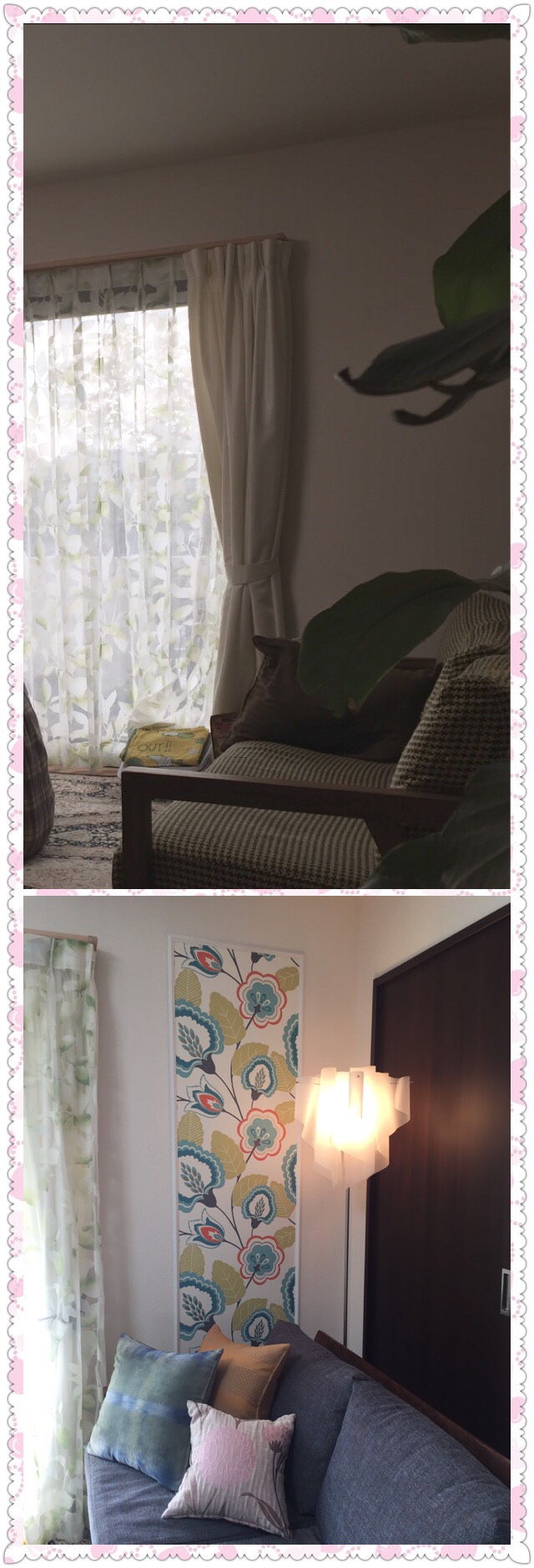 カーテンはレースを手前に持ってきました。