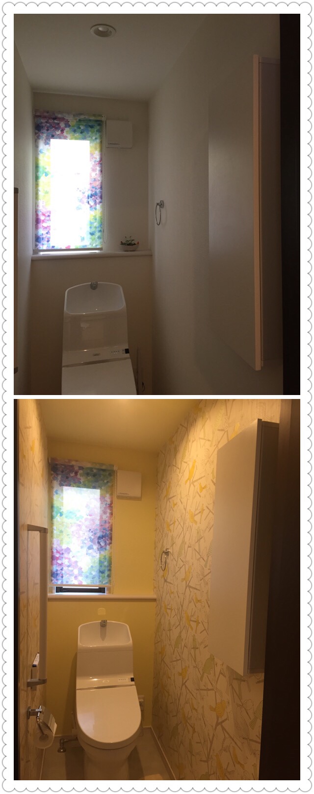 真っ白な壁紙を小鳥柄を両サイドとドアまわり。