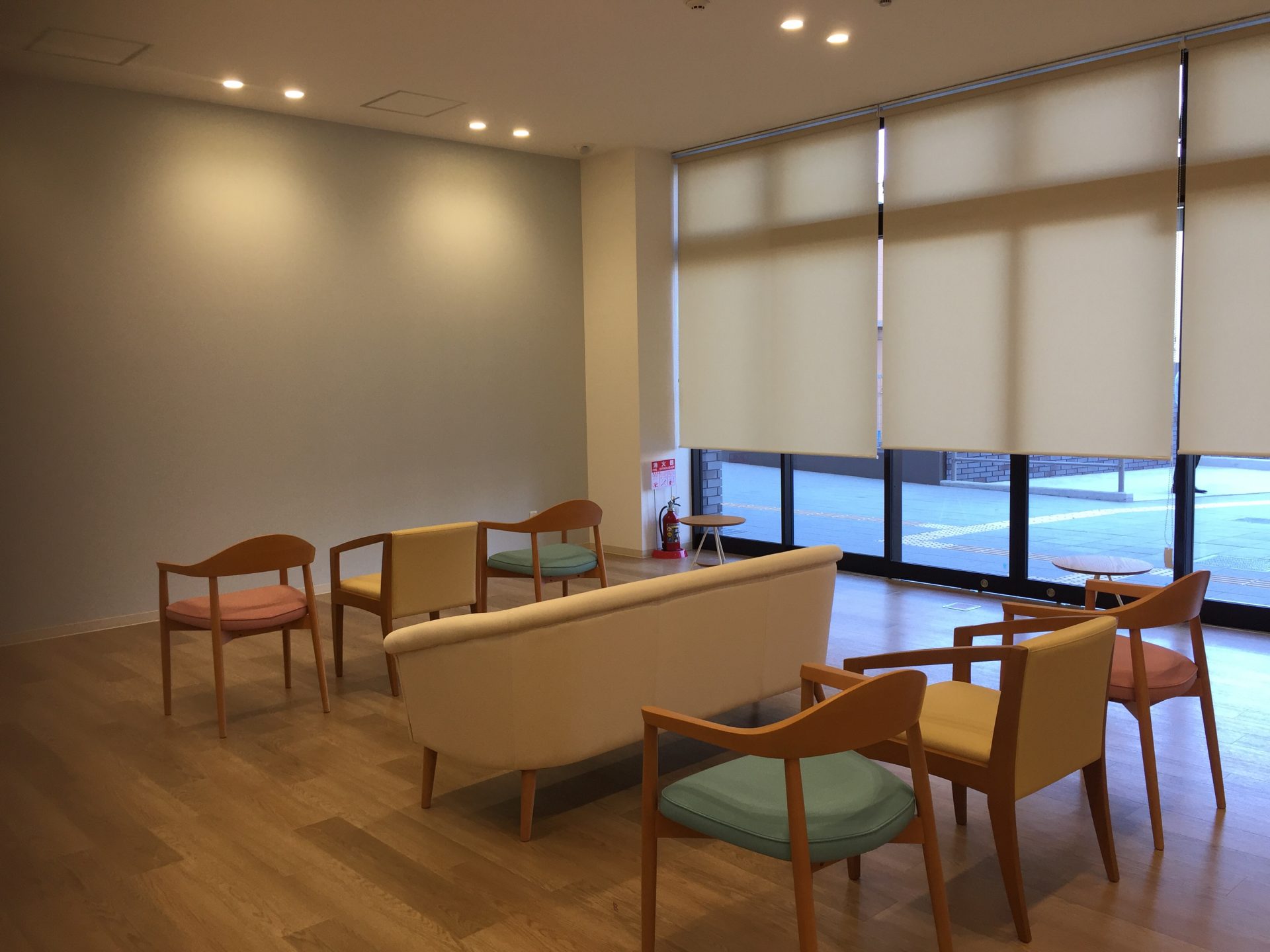 県内にいくつか店舗のある薬局ですが、イスのデザインや色をバラバラにしているところはなく、配置もゆるーく。医療のイメージを感じない空間をご提案いたしました。