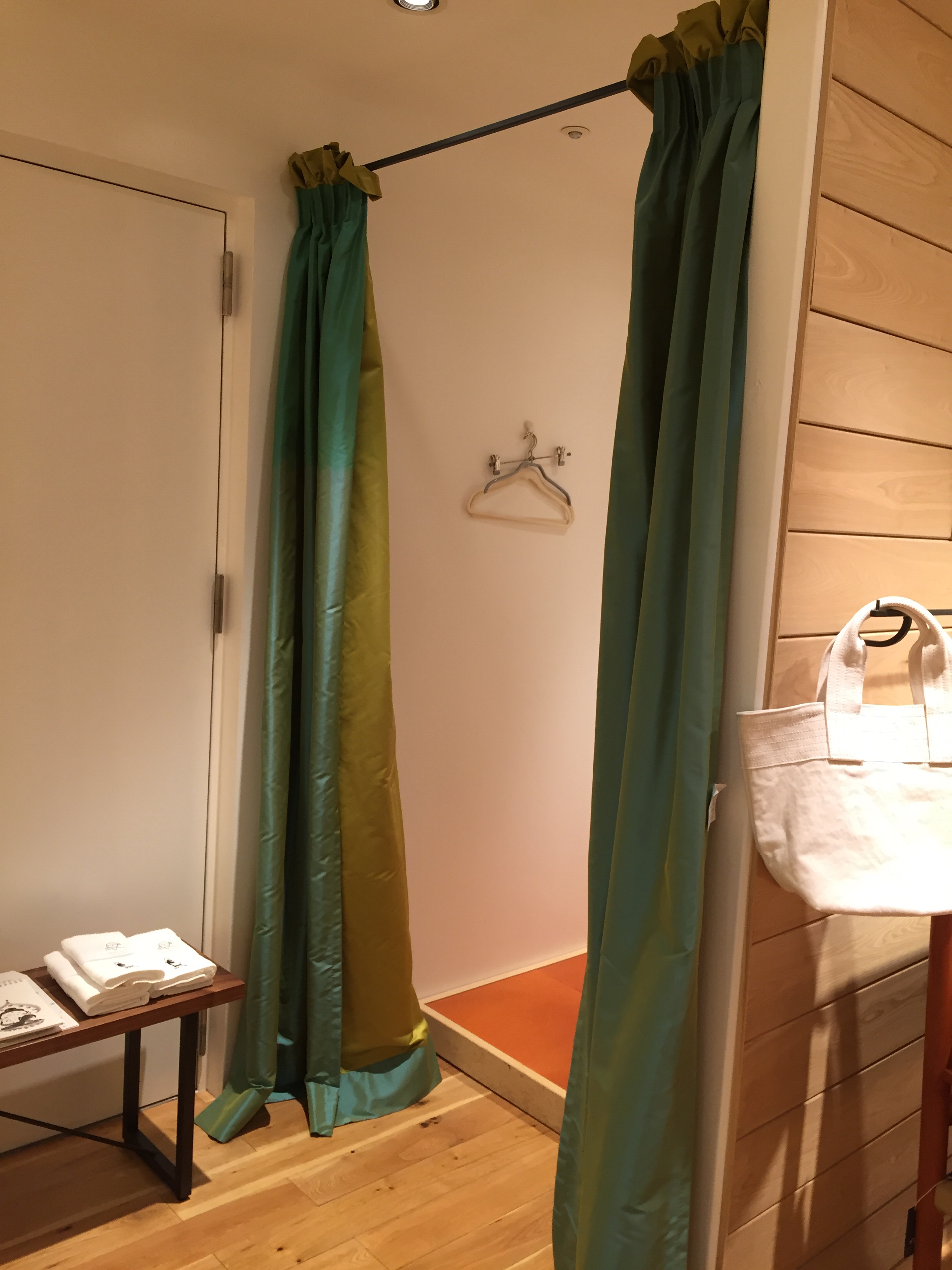 フィッティングルームのカーテンのデザインもステキです。 ブレイクさせてるし。