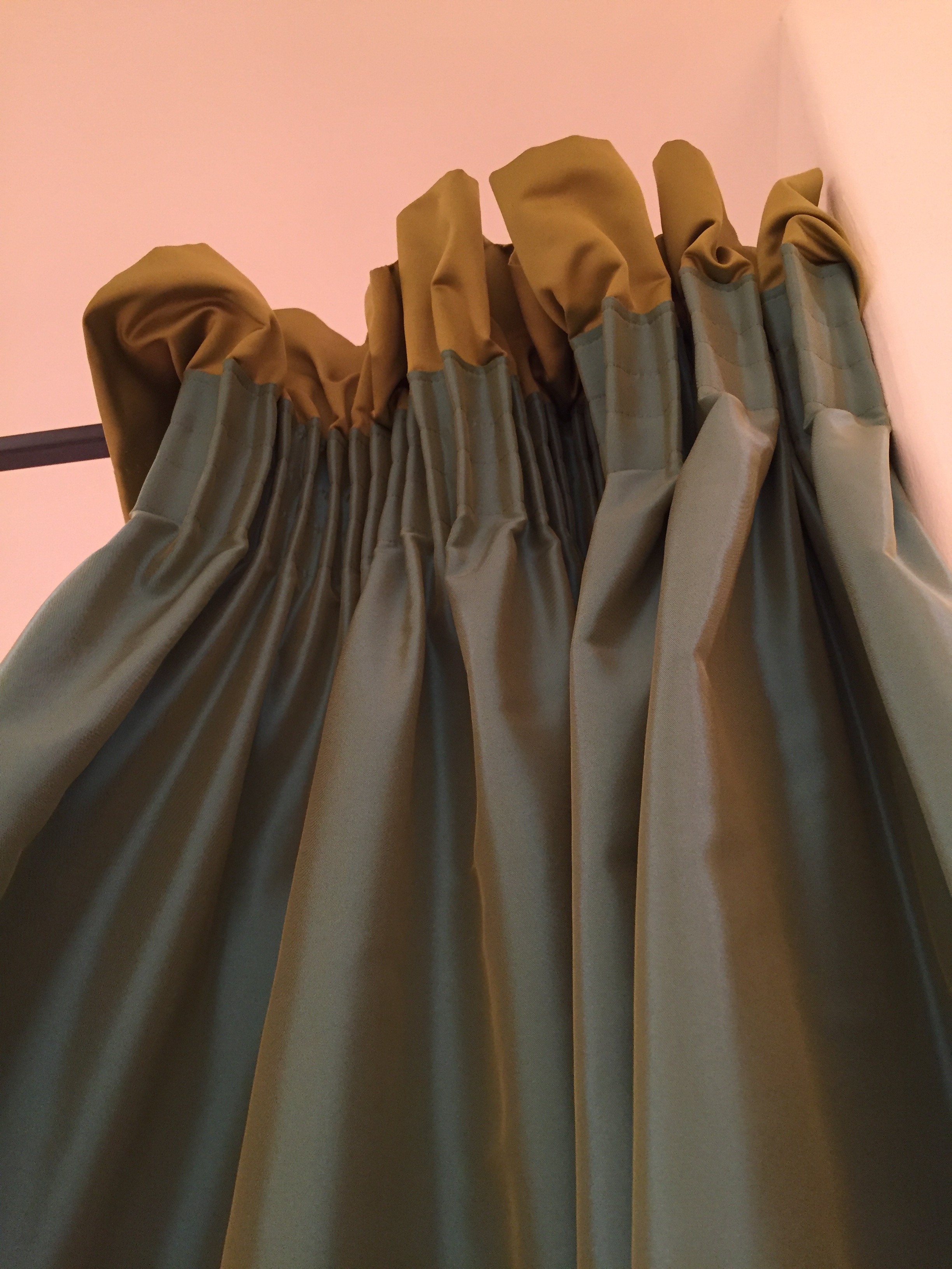 お店はこんな感じ。LE KLINTの照明にフジエテキスタイルのカーテン。