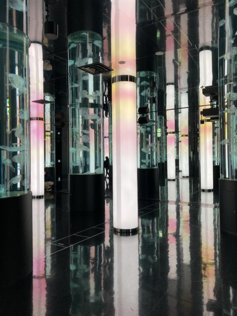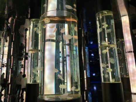 アプリをダウンロードして、その近くのQRコードを読み取ると近くの水槽の生物の説明が読めるしくみ。今どきのガイドはこんななんだ。