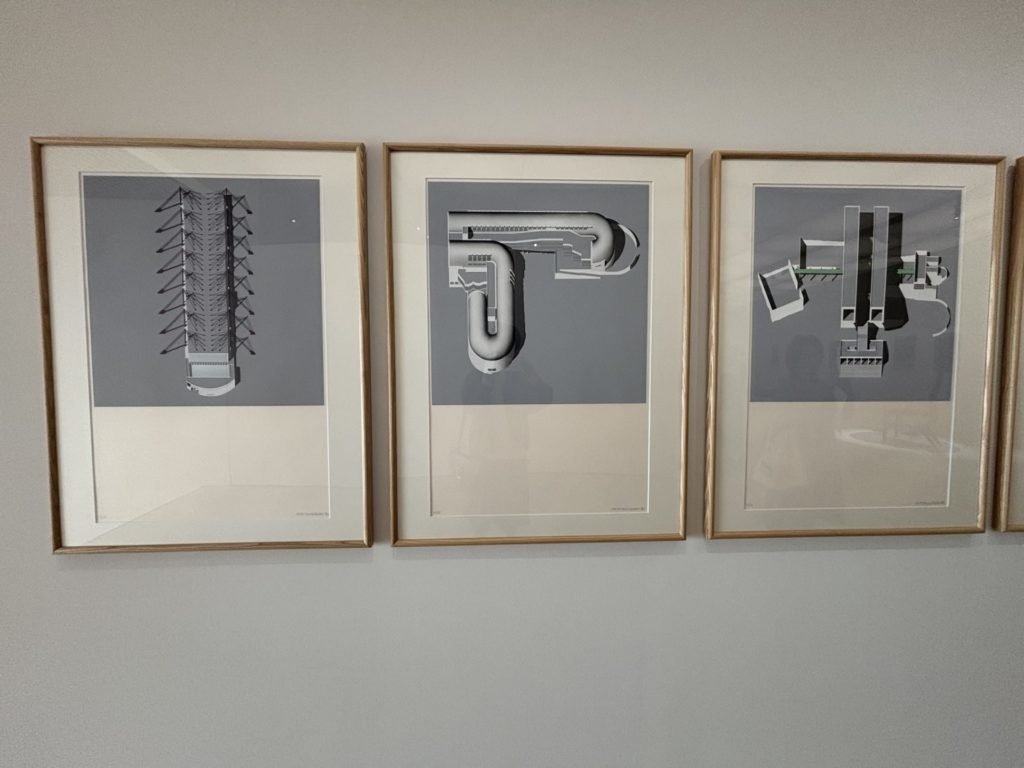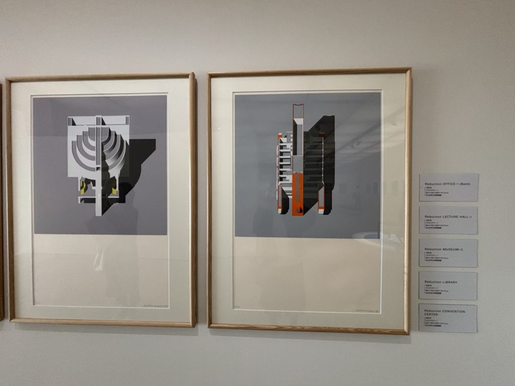 建築模型、図面、そして建物を描いた版画のようなアート作品たち。