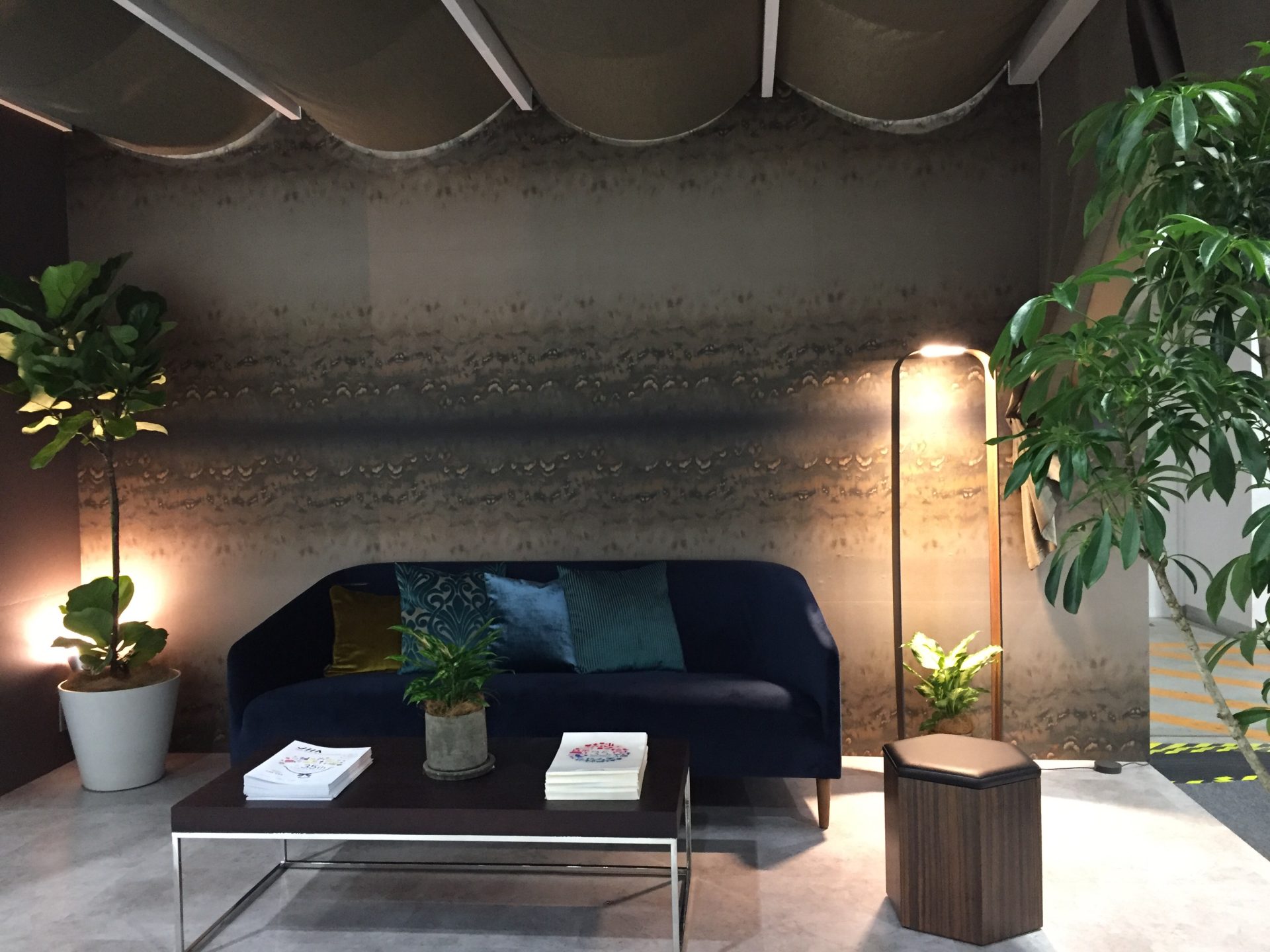カラフルなのもたくさん。それから、インテリア産業協会のブース。今年たくさん見られたデジタルプリント壁紙。こんなきれいなグラデーションが出るんだぁ。