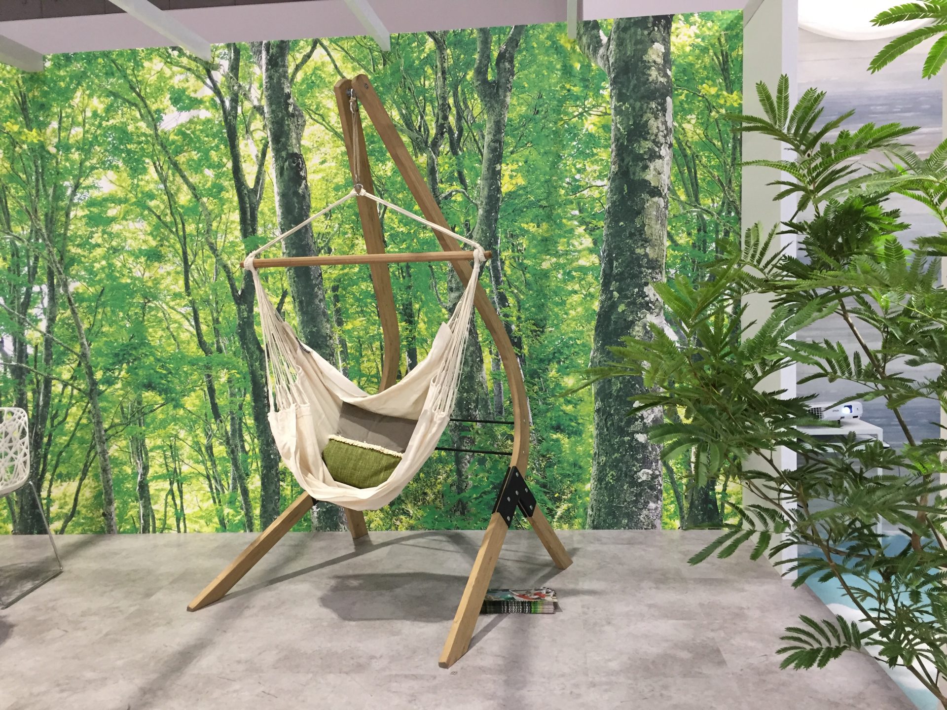 デジタルプリント〜ってこのイメージ。写真のような風景。先ほどのハンモックが似合う。インドア森林浴。さわやか〜