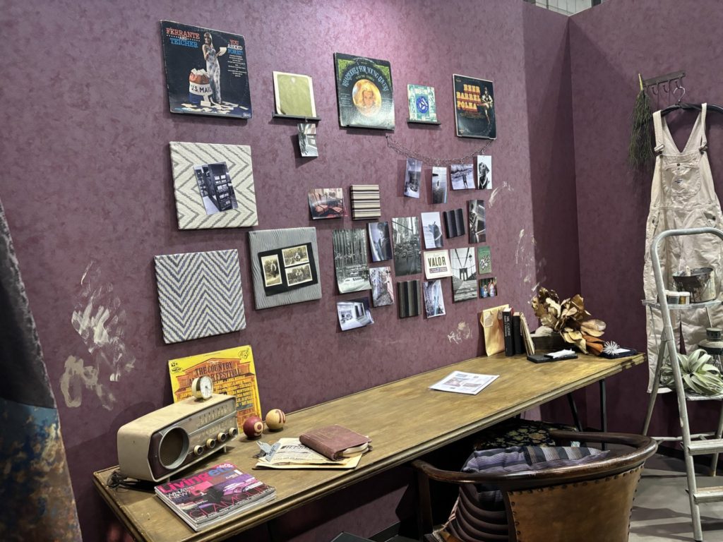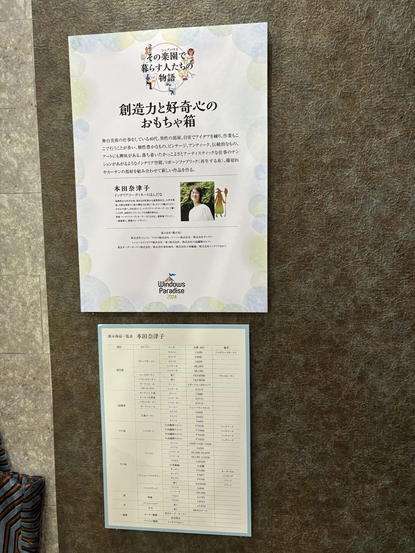 今回の展示では、「シェアハウスに住むアーティスティックな仕事のプロをめざす住民たち」というテーマで、窓装飾を中心に空間をコーディネートしました。