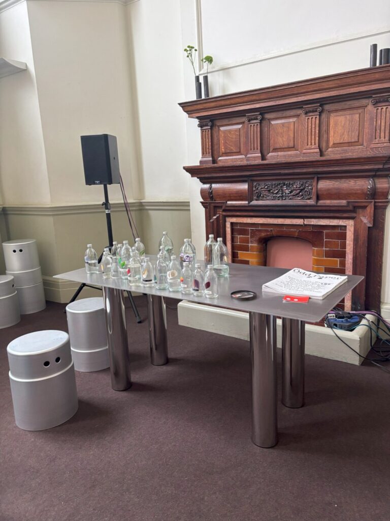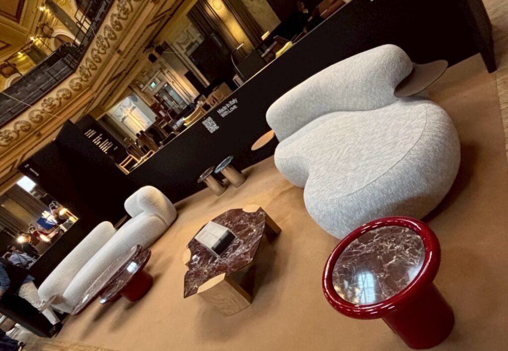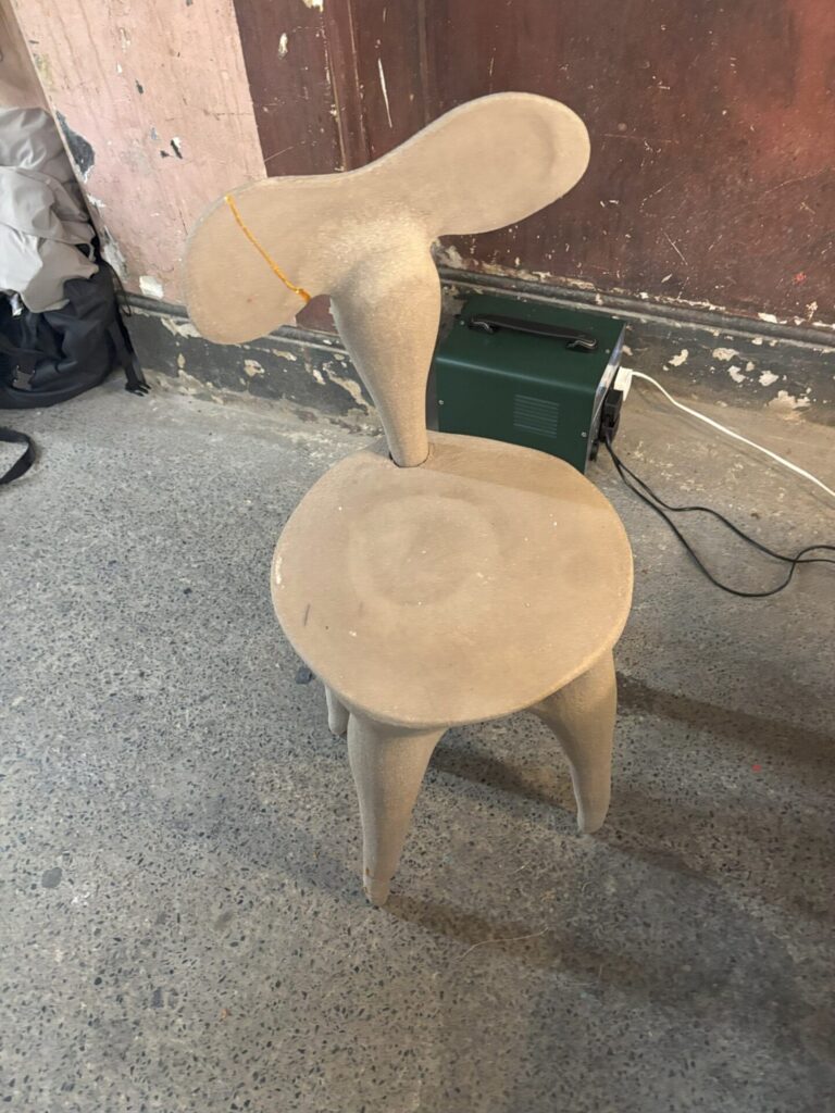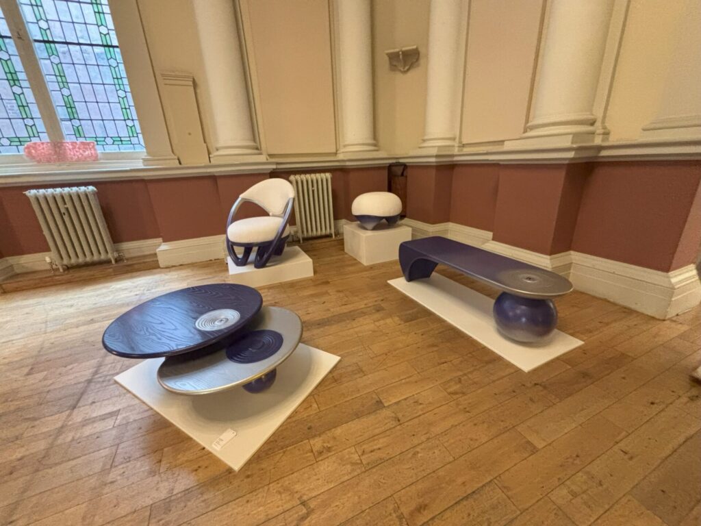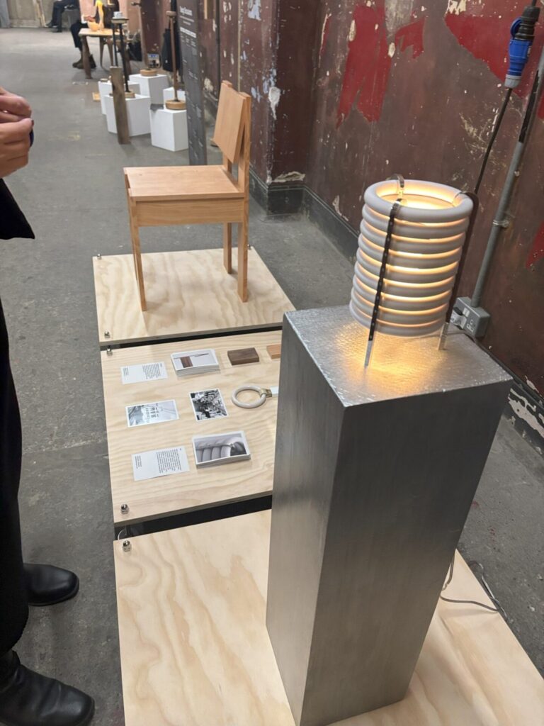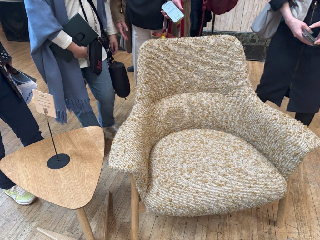 若いアーティストさんたちのブースと思われるところで、ゴールドのラインが入った椅子を見て「金継ぎ?」と尋ねたら「Yes, Kintsugi!」との返事。